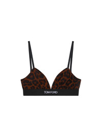 - STRETCH BRA - ELASTICATED BAND WITH TOM FORD JACQUARD LABEL - ELASTIC ADJUSTABLE STRAPS - CENTRE BACK GOLD METAL LOGOED HOOK FOR CLOSURE - GOLD METAL HARDWARE - CRAFTED IN REFLECTED LEOPARD PRINTED MODAL - 95% VISCOSE 5% ELASTANE