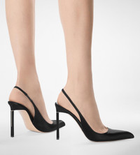 PRODUCT NO: 5955287630 A must from TOM FORD, the slingback in luminous satin, defined by a pointed toe with a pronounced bombe effect and elevated by signature T hardware on a stiletto heel. Composition: 68% viscose 32% silk Lining: nude leather Sole: nude leather with rubber tap detail Heel: 105 mm stiletto heel Galvanic: pale gold Made in Italy