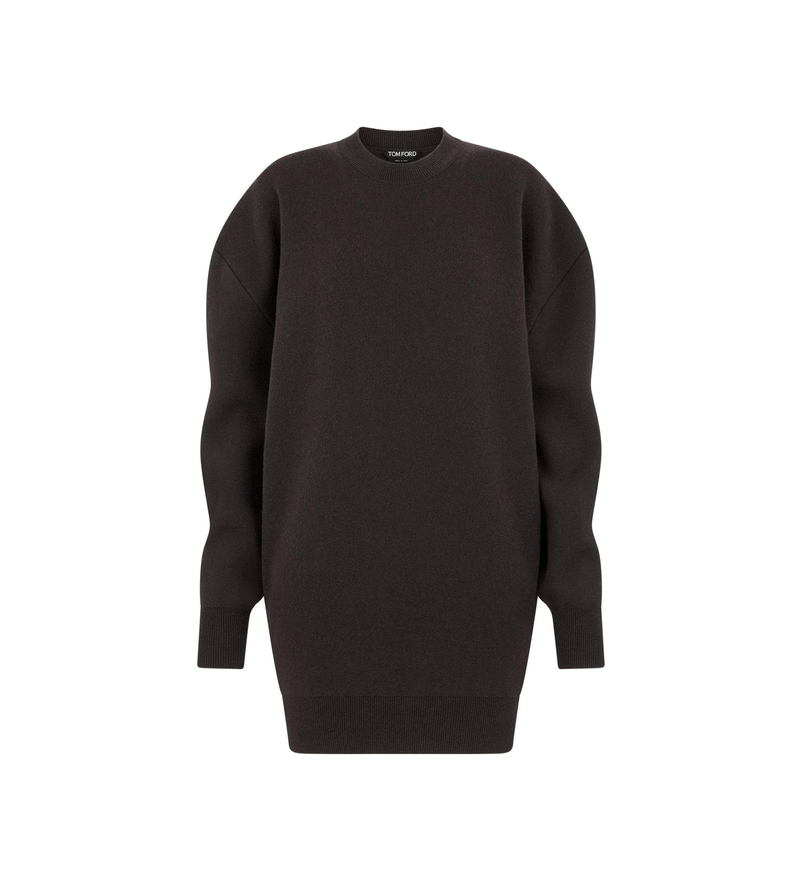- SWEATSHIRT MINI DRESS - COUTURE SLEEVES - FULLY FASHIONED - RIBBED CUFFS, COLLAR AND HEM - CRAFTED IN SCULPTURAL DOUBLE FACE WOOL CASHMERE - 66% VIRGIN WOOL 28% CASHMERE 5% POLYAMIDE 1% ELASTANE