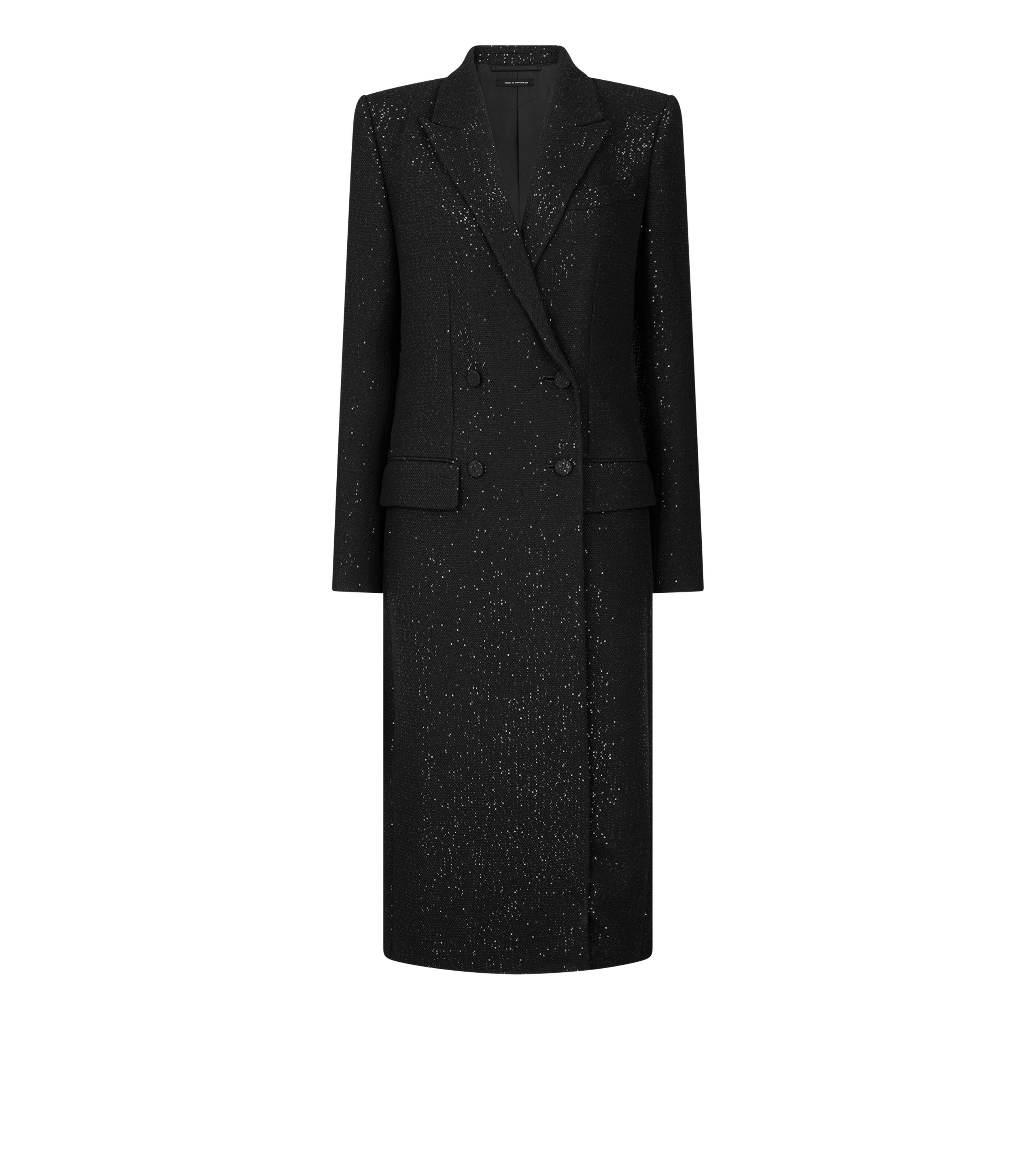 SEQUINED WOOL BLEND CREPE DOUBLE BREASTED COAT