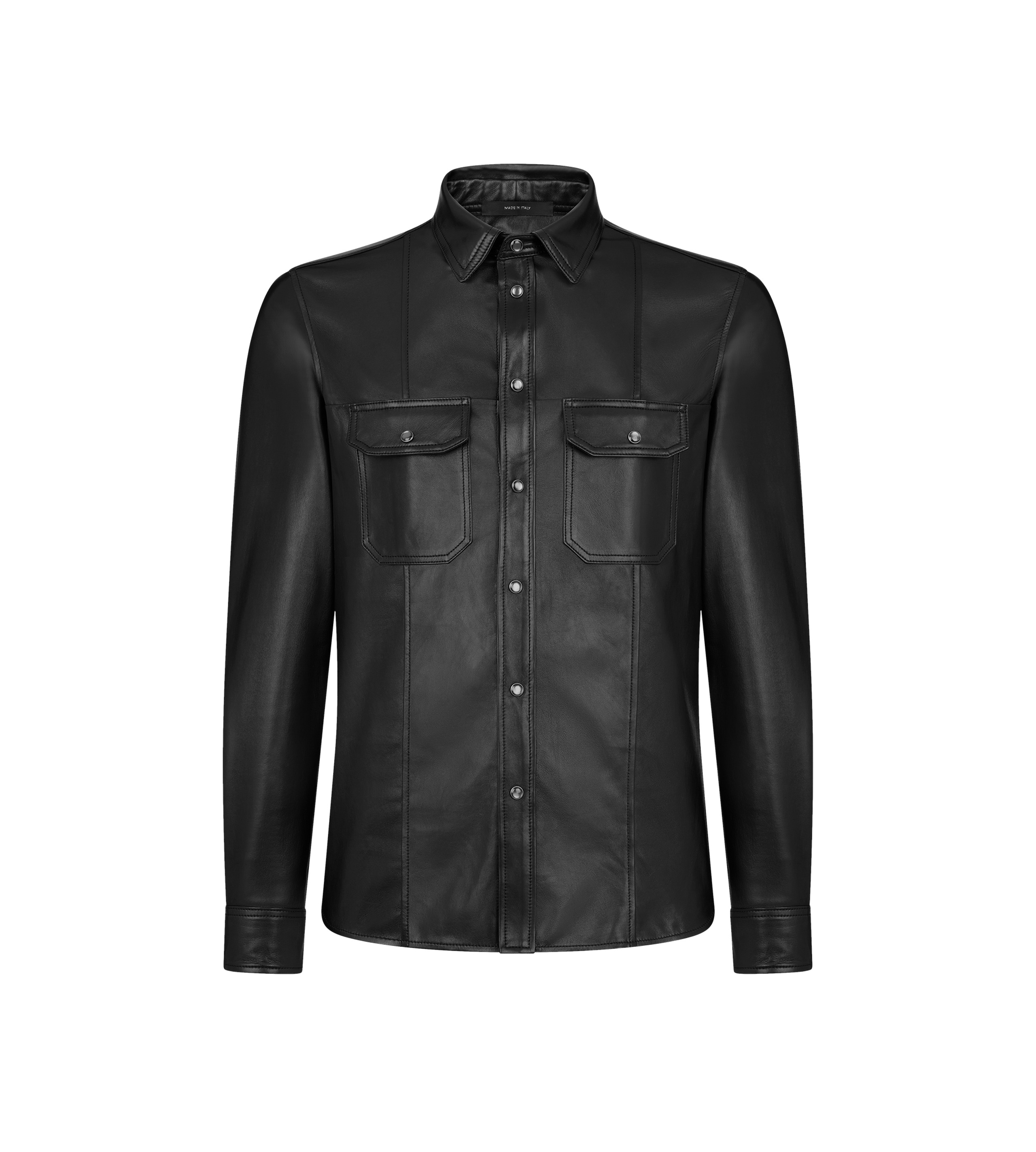 - UNLINED WESTERN SHIRT - CLASSIC FIT - MOTHER OF PEARL PRESS SNAPS ALONG FRONT, CHEST POCKETS AND CUFFS - CENTRE BACK LENGTH 73CM - 100% LEATHER - MADE IN ITALY
