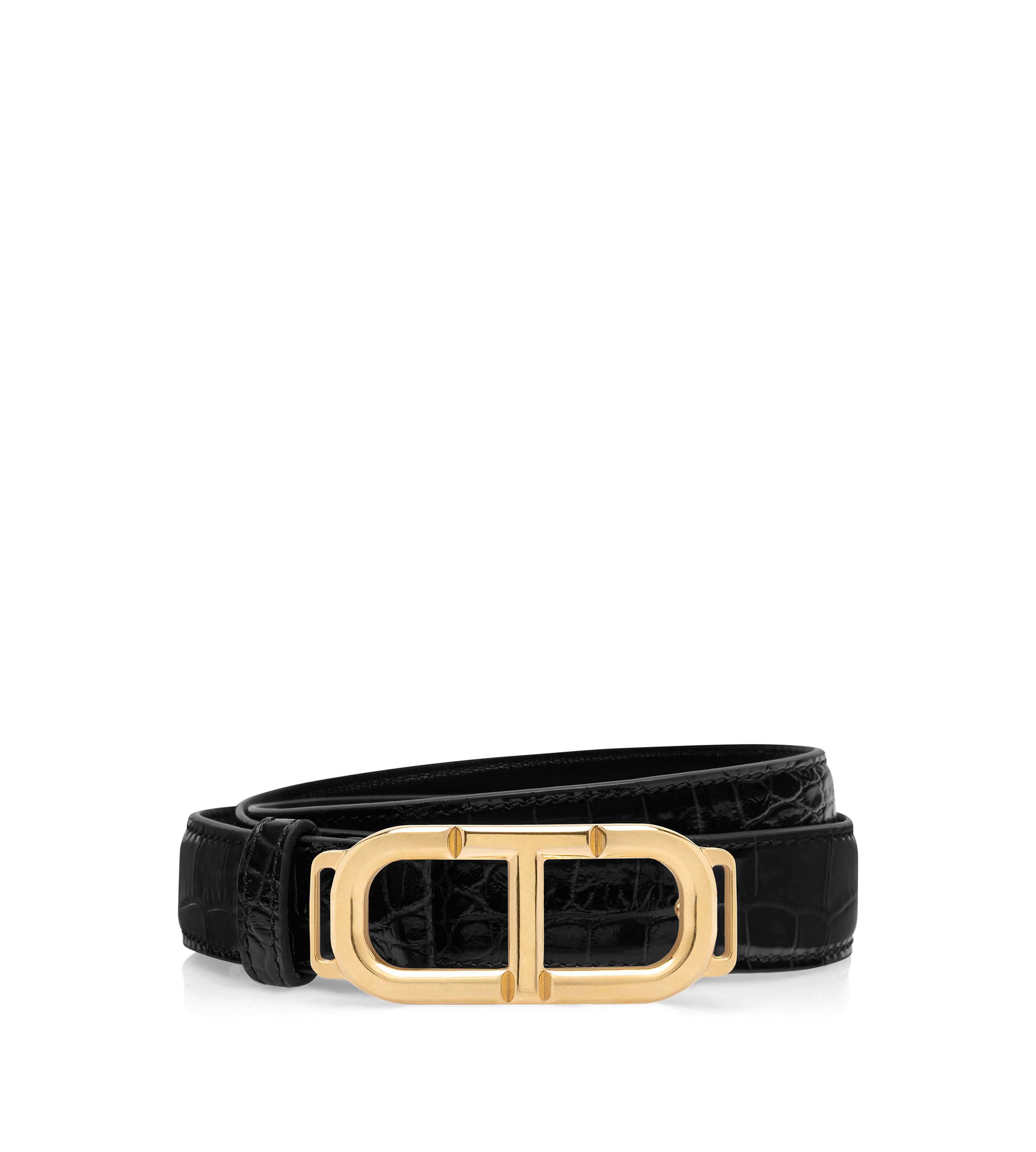 SHINY STAMPED CROCODILE LEATHER WHITNEY BELT