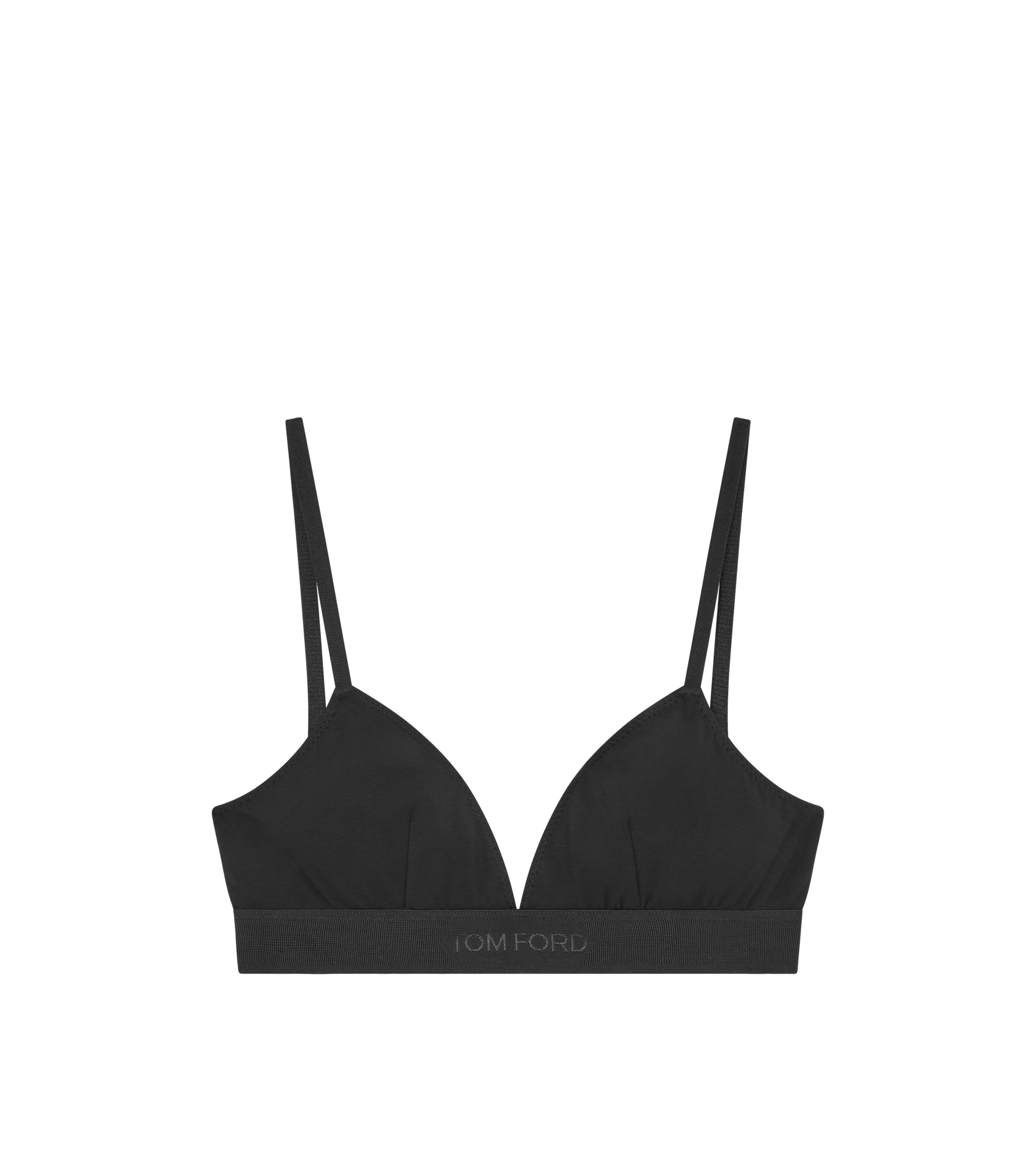 - STRETCH BRA - ELASTICATED BAND WITH TOM FORD JACQUARD LABEL - ELASTIC ADJUSTABLE STRAPS - CENTRE BACK GOLD METAL LOGOED HOOK FOR CLOSURE - GOLD METAL HARDWARE - CRAFTED IN MODAL - 97% MODAL 3% ELASTANE