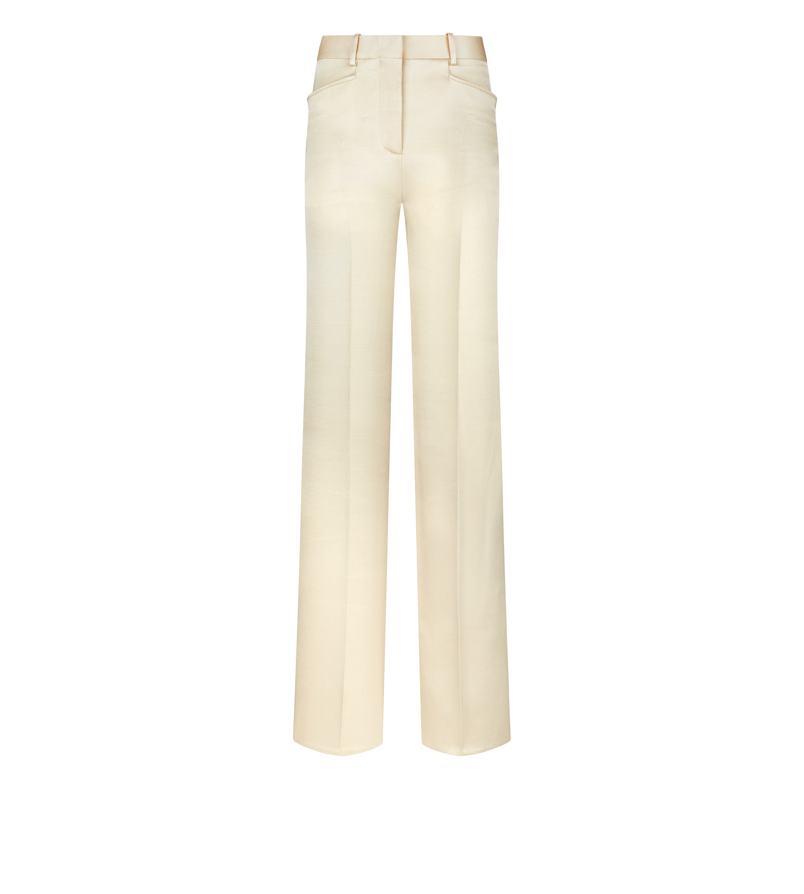 - BOOT CUT TAILORED PANTS - SIGNATURE TAILORING CONSTRUCTION - LOOPED WAISTBAND WITH HOOK AND BAR CLOSURE - FRONT FROGMOUTH POCKETS - WELT POCKETS ON THE BACK - SIGNATURE TOM FORD HORN BUTTON - SIGNATURE TOM FORD MOTHER OF PEARL BUTTONS - CRAFTED IN SILK AND WOOL TWILL - 51% SILK 49% VIRGIN WOOL