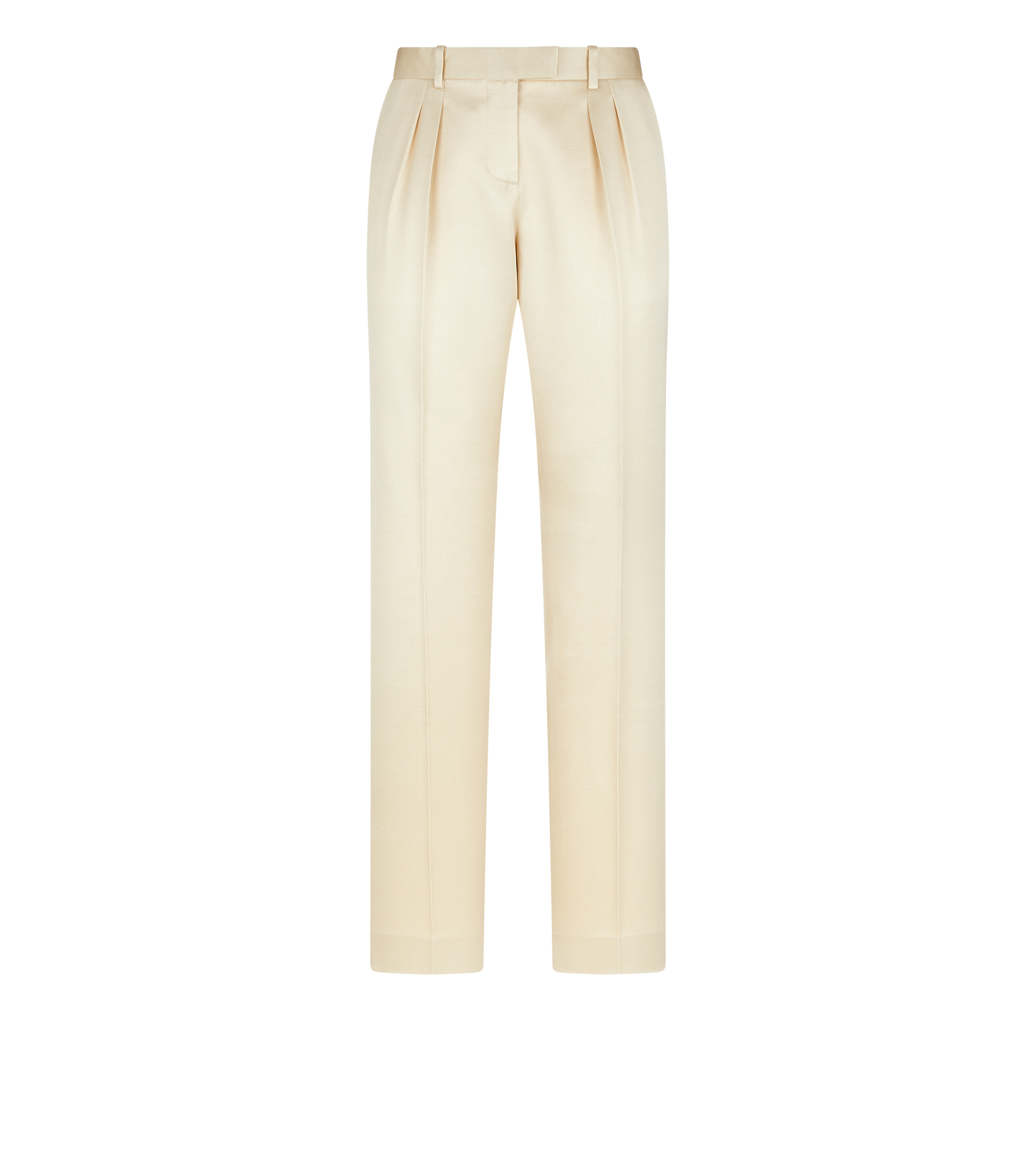 - TAILORED PLEATED PANTS - SIGNATURE TAILORING CONSTRUCTION - LOOPED WAISTBAND WITH HOOK AND BAR CLOSURE - SLANTED SIDE POCKETS - BUTTONED WELT POCKETS ON THE BACK - SIGNATURE TOM FORD HORN BUTTON - SIGNATURE TOM FORD MOTHER OF PEARL BUTTONS - CRAFTED IN SILK AND WOOL TWILL - 51% SILK 49% VIRGIN WOOL