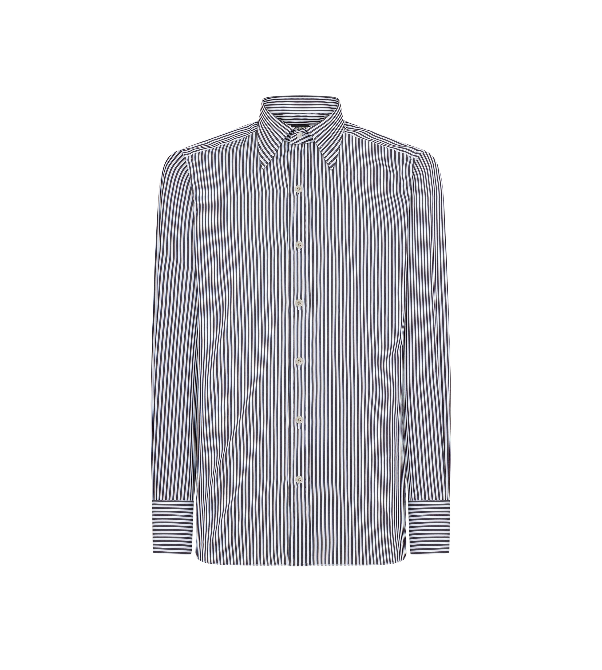 PRODUCT NO: HSBC01-CSP16 Cut from a fine cotton-silk blend for a soft, luminous hand. The stripe pattern adds visual rhythm to a tailored slim silhouette. Composition: 81% cotton, 19% silk. Made in Italy.