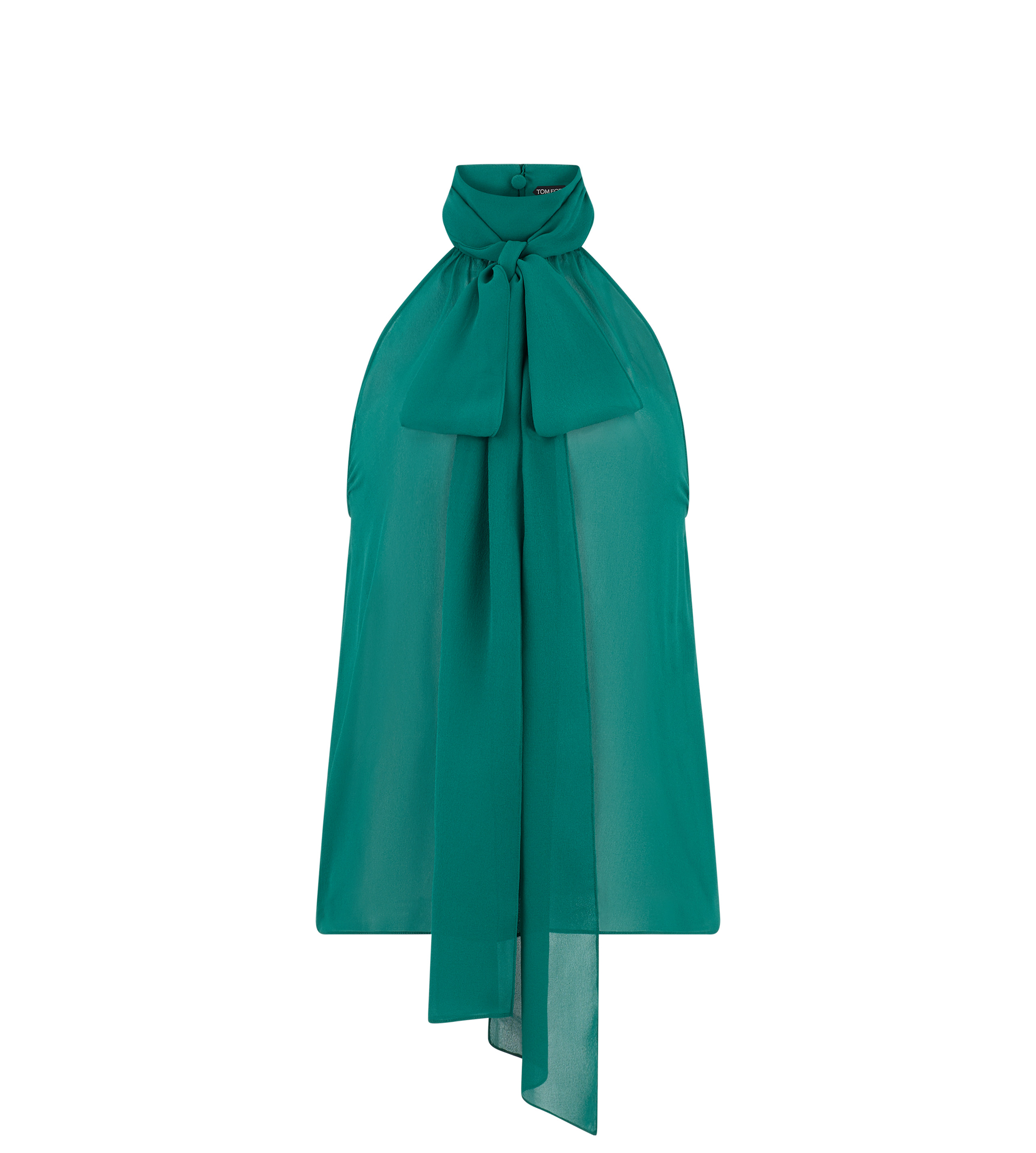 - HALTERNECK FLUID FIT LAVALLIERE BLOUSE - LONG NECK TIE - INVISIBLE ZIP - CRAFTED IN SILK GEORGETTE - 100% SILK