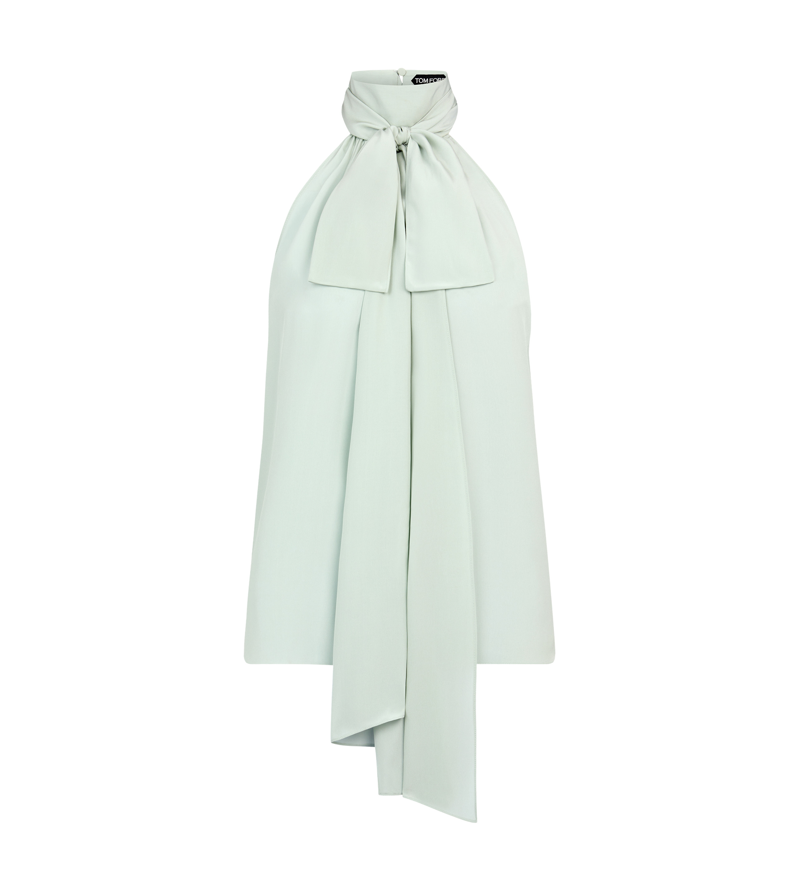 - HALTERNECK FLUID FIT LAVALLIERE BLOUSE - SLEEVELESS BLOUSE - LONG NECK TIE - COVERED BUTTONS ON THE BACK CLOSURE - CRAFTED IN SMOOTH SILK CREPE DE CHINE - 100% SILK - MADE IN ITALY