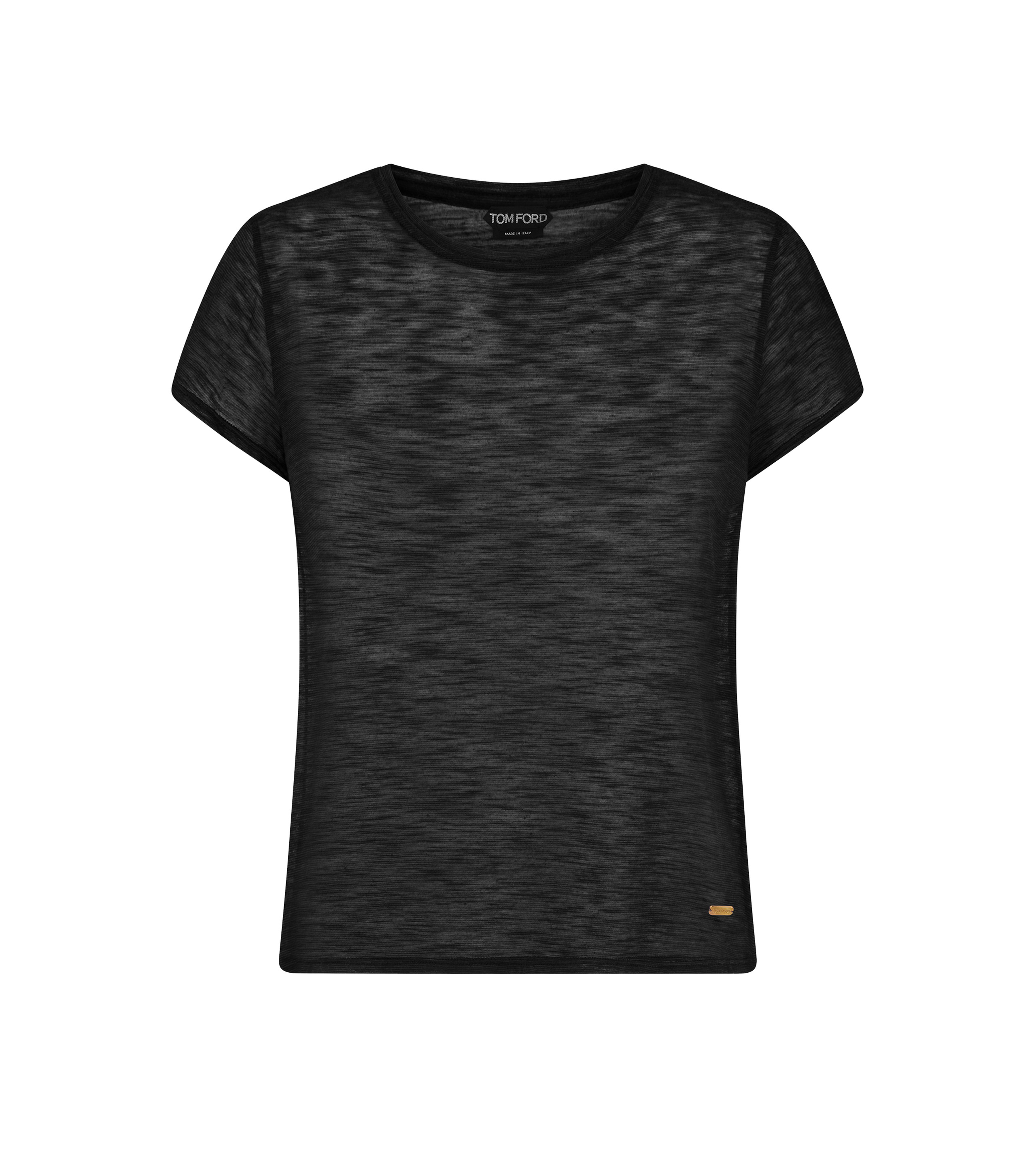 - SHORT SLEEVE T-SHIRT - CREWNECK - TOM FORD LOGO METAL PLAQUE ON FRONT LEFT SIDE - AMBER VINTAGE GOLD METAL HARDWARE - CRAFTED IN SLUB COTTON JERSEY - 68% COTTON 32% POLYESTER