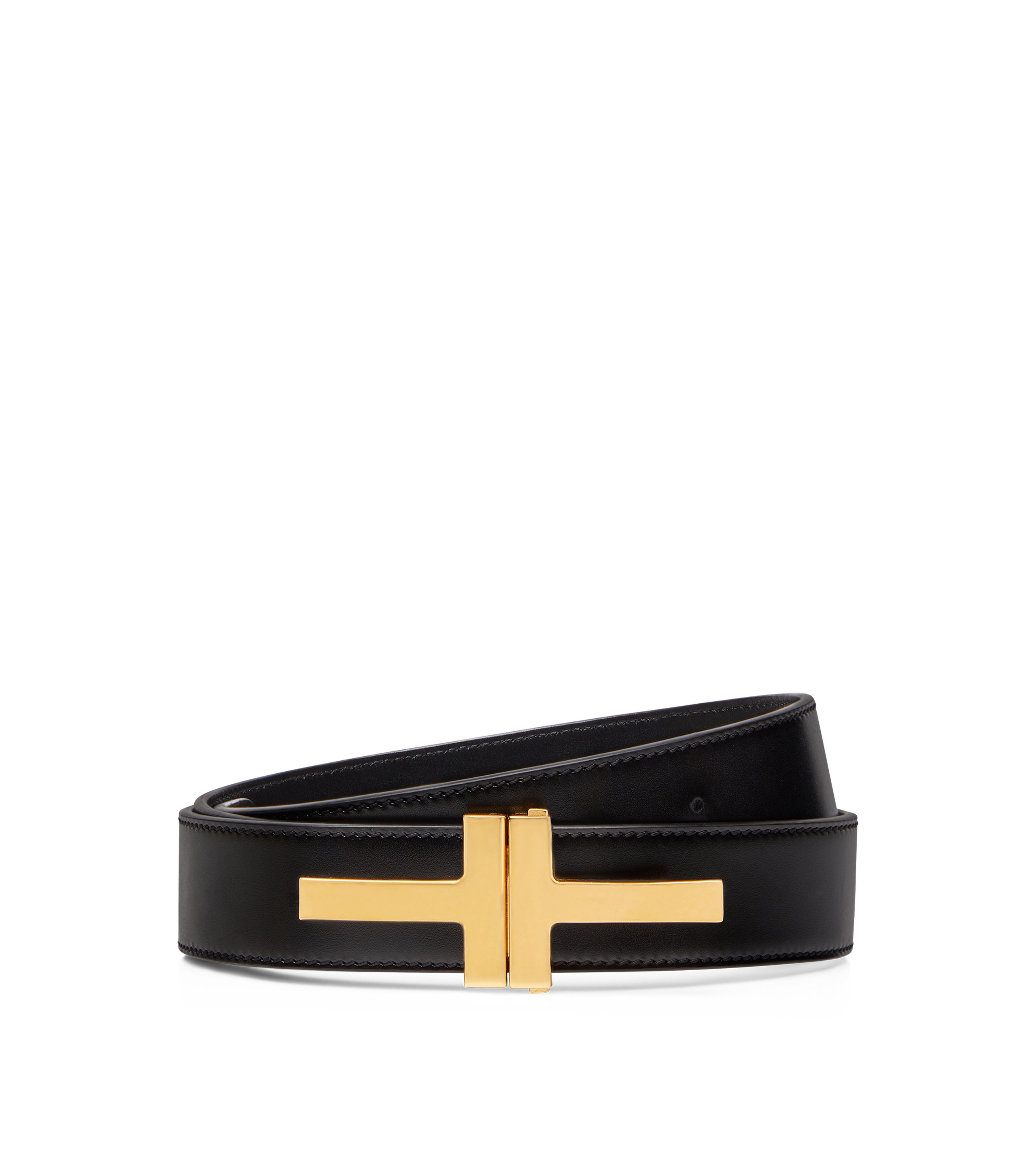 - DOUBLE T BELT - 33MM - 100% LEATHER - HARDWARE: 100% BRASS GOLD GALVANIZATION - MADE IN ITALY