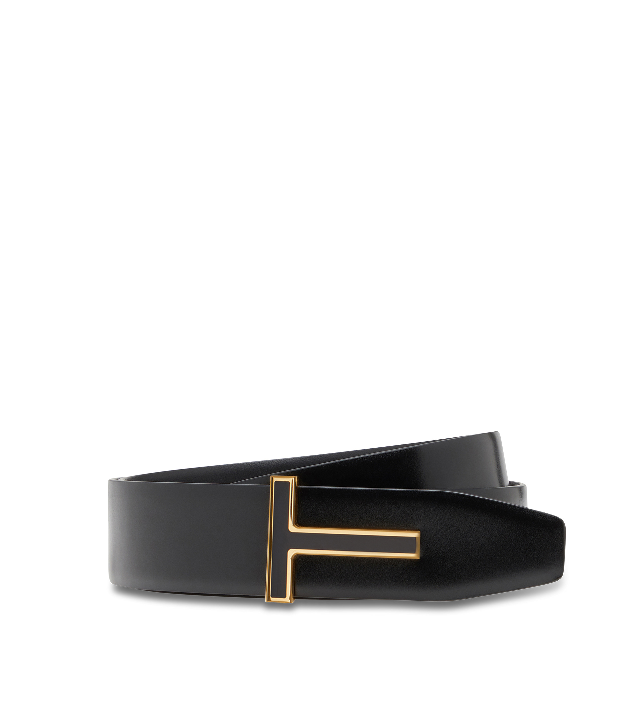 - REVERSIBLE BELT WITH ENAMEL T BUCKLE - 40MM - 100% LEATHER - HARDWARE: 100% BRASS GOLD GALVANIZATION - MADE IN ITALY