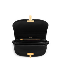 - T METAL CLOSURE WITH ENGRAVED LOGO - FLAP WITH FRAME DETAIL - ADJUSTABLE LEATHER SHOULDER STRAP - SHOULDER AND CROSSBODY CARRY - 3 COMPARTMENTS - 1 INNER ZIPPED POCKET - LINING: LEATHER - DIMENSIONS: 23 X 17 X 7 CM - MEDIUM STRAP DROP: 50 CM - 100% CALFSKIN