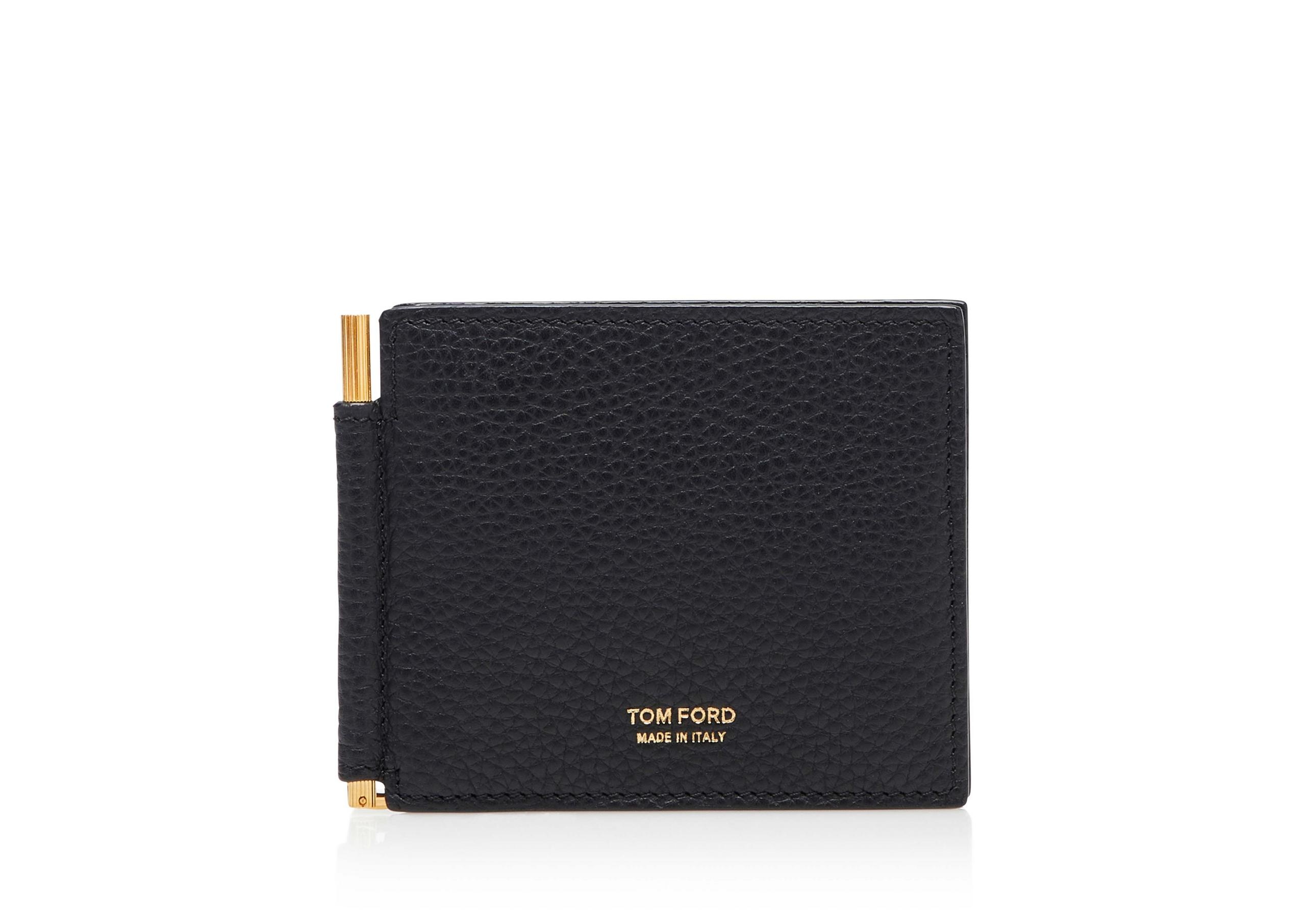 - T LINE MONEY CLIP WALLET - 8 CREDIT CARD SLOTS - CENTRAL MONEY CLIP IN GOLD HARDWARE - TOM FORD EMBOSSED GOLD LOGO - UPPER: 100% LEATHER - HARDWARE: 100% BRASS GOLD GALVANIZATION