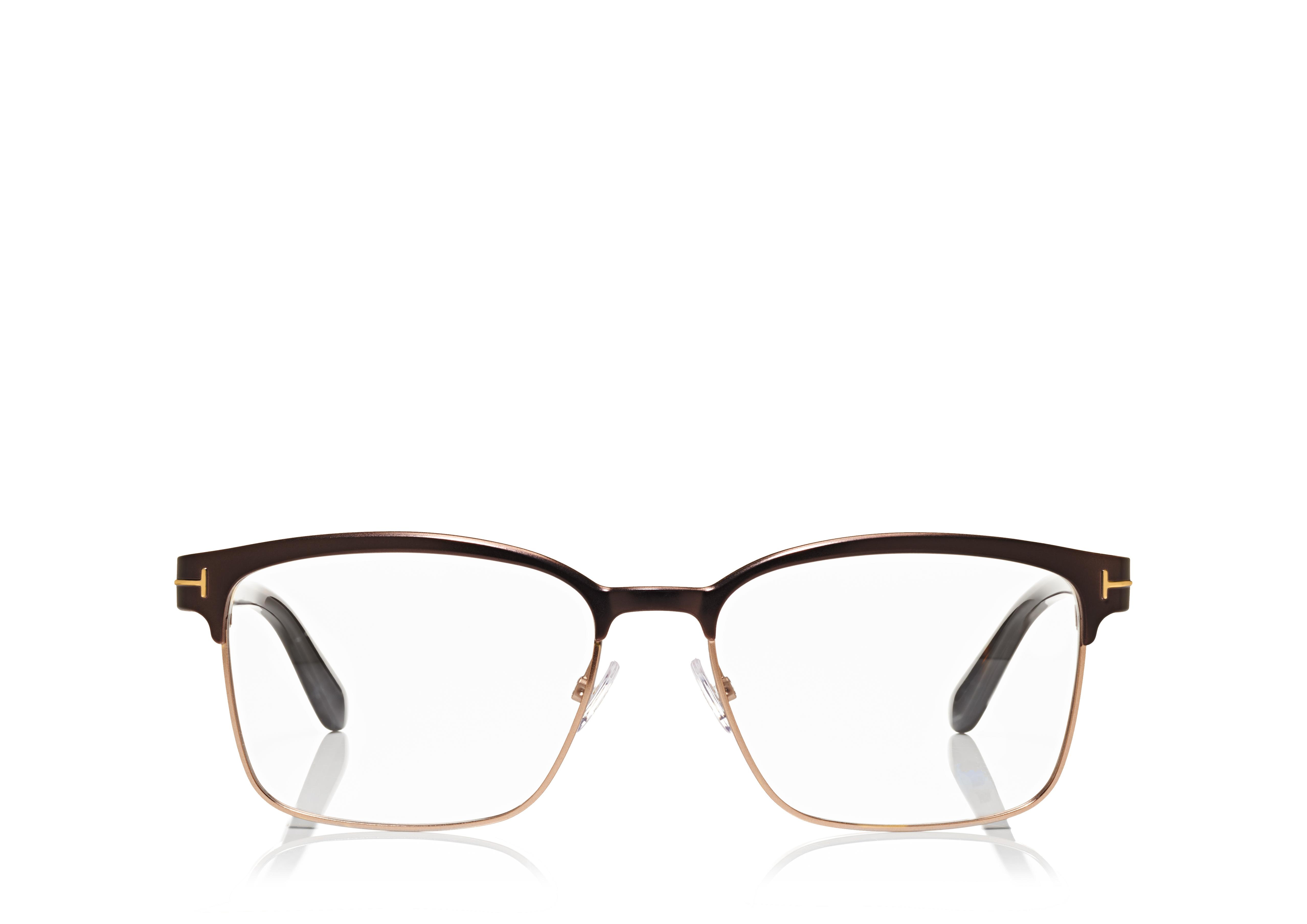 - Matte black outer top and rose gold inner side metal front and shiny black acetate temples with rose gold metal T logo. - Shiny gunmetal metal front and shiny horn acetate temples with shiny gunmetal T logo. - Matte brown outer top and matte bronze inner side metal front and shiny classic havana acetate temples with matte rose gold metal T logo. - Spring hinge. - Size: 54 - Made in Italy