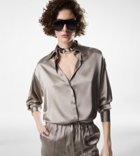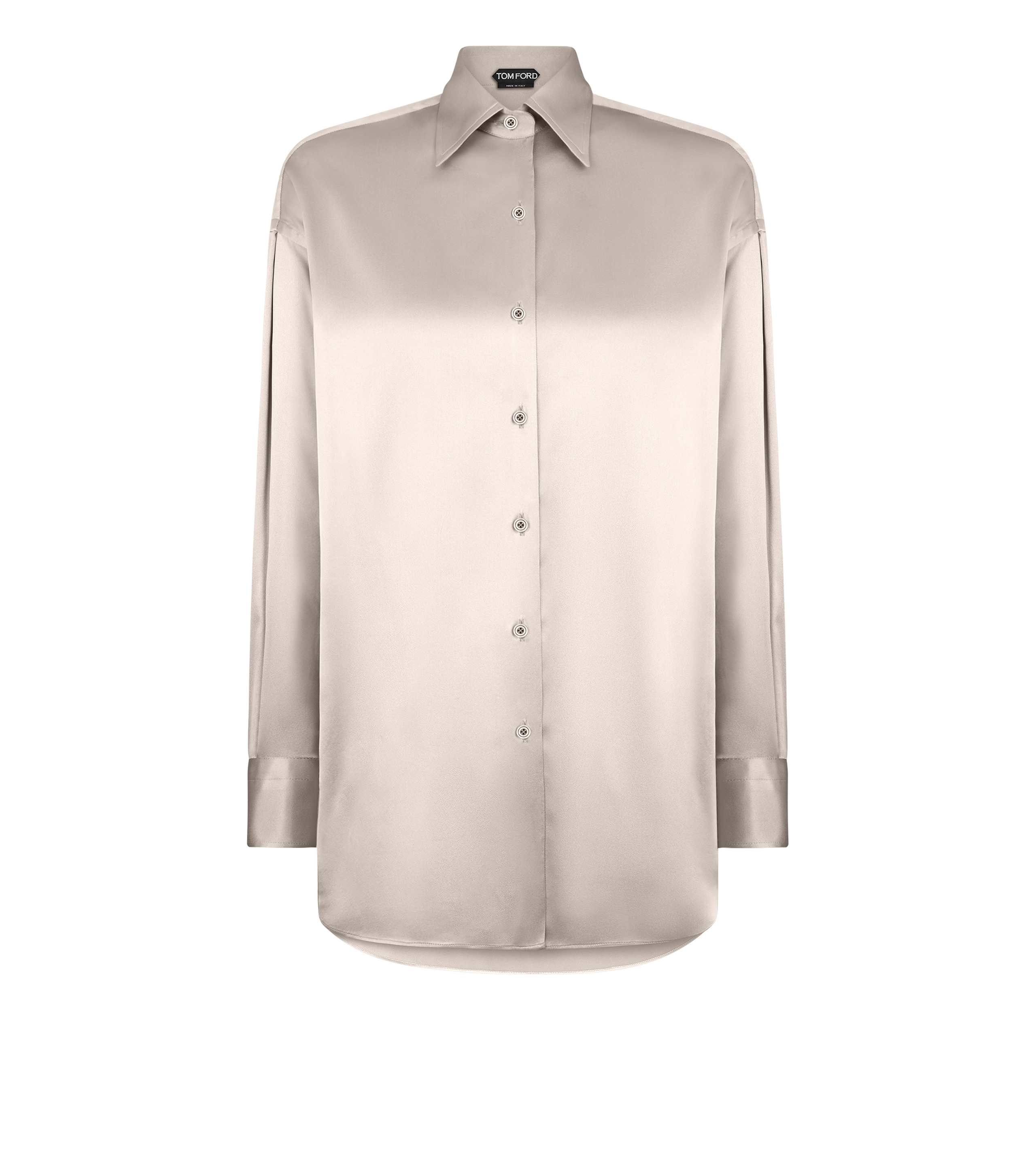 - RELAXED FIT - LONG SLEEVE BUTTONED SHIRT - BACK YOKE - BUTTONED CUFFS - TONAL MOTHER OF PEARL BUTTONS - CRAFTED IN STRETCH SILK SATIN