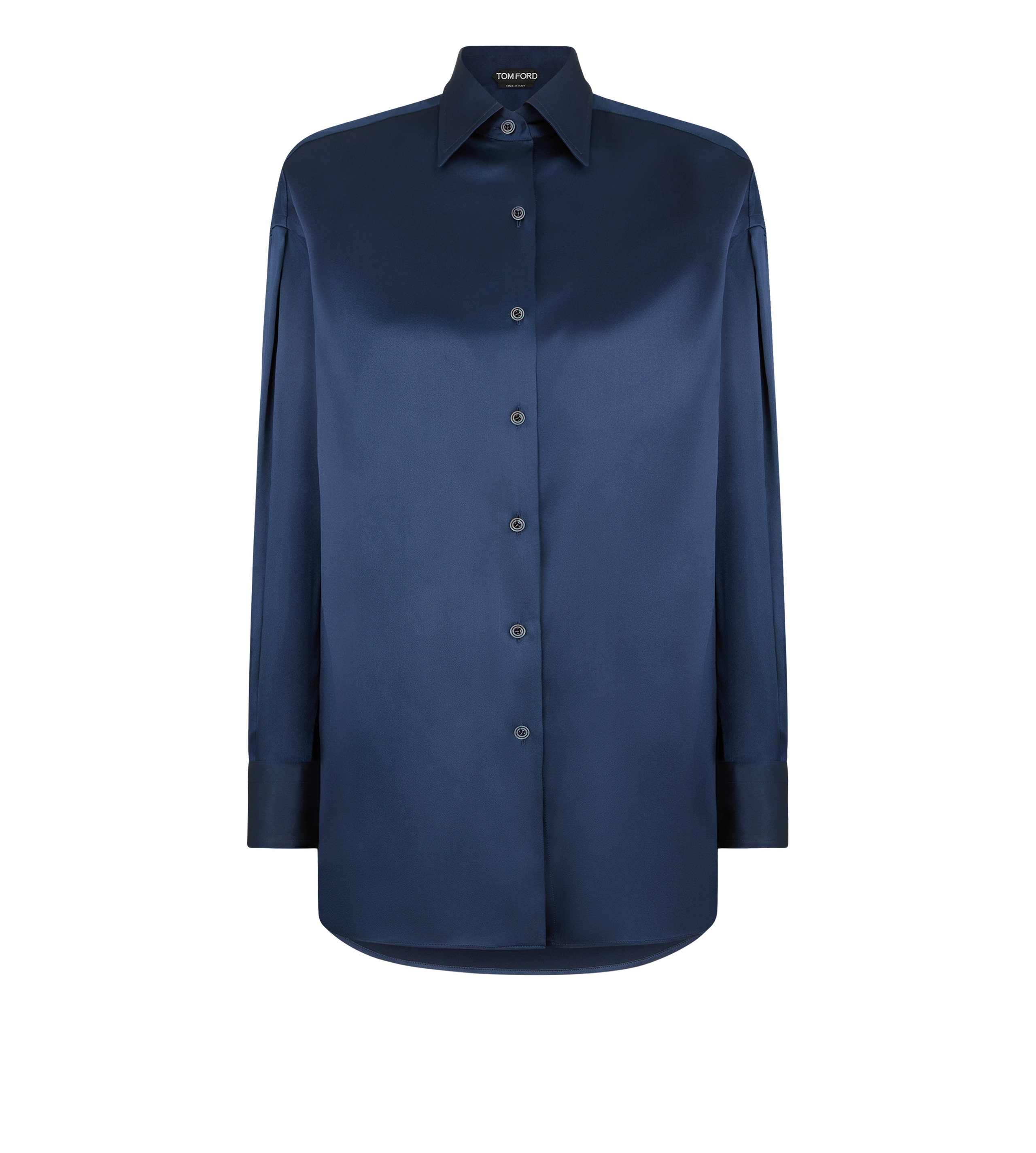 - RELAXED FIT - LONG SLEEVE BUTTONED SHIRT - BACK YOKE - BUTTONED CUFFS - TONAL MOTHER OF PEARL BUTTONS - CRAFTED IN STRETCH SILK SATIN