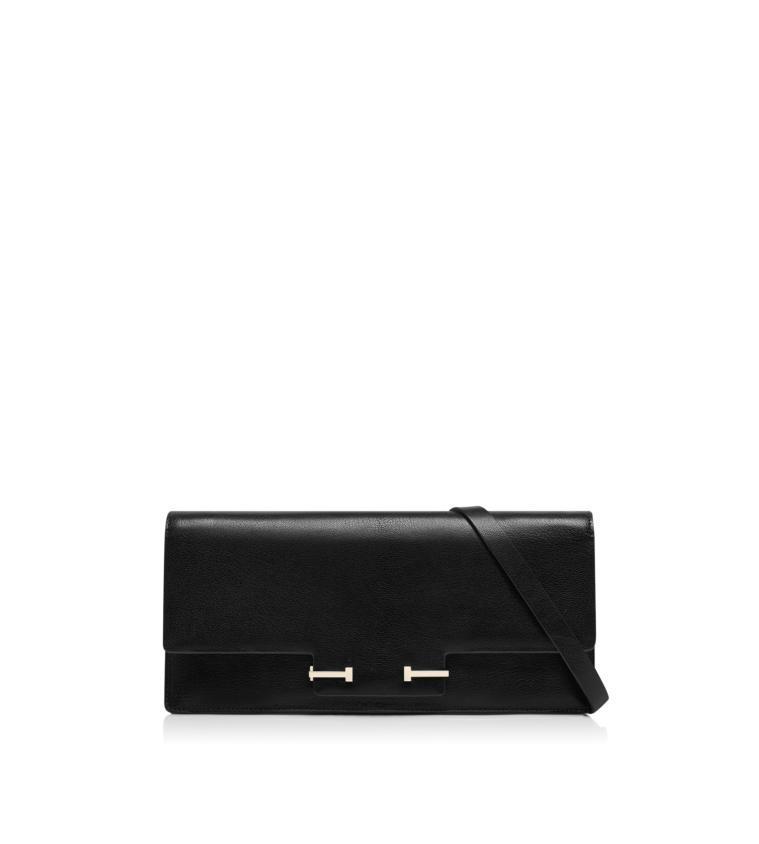 - DOUBLE T SIGNATURE CLOSURE - ADJUSTABLE AND DETACHABLE SHOULDER STRAP - SHOULDER AND HAND CARRY - ONE COMPARTMENT - INSIDE OPEN POCKET - PULL-OFF MIRROR - LINING: NAPPA LEATHER - DIMENSIONS: 30 X 13,5 X 5 CM - SHOULDER STRAP DROP: 41 CM MEDIUM / 50 CM MAXIMUM / 35 CM MINIMUM - 100% GOATSKIN - MADE IN ITALY