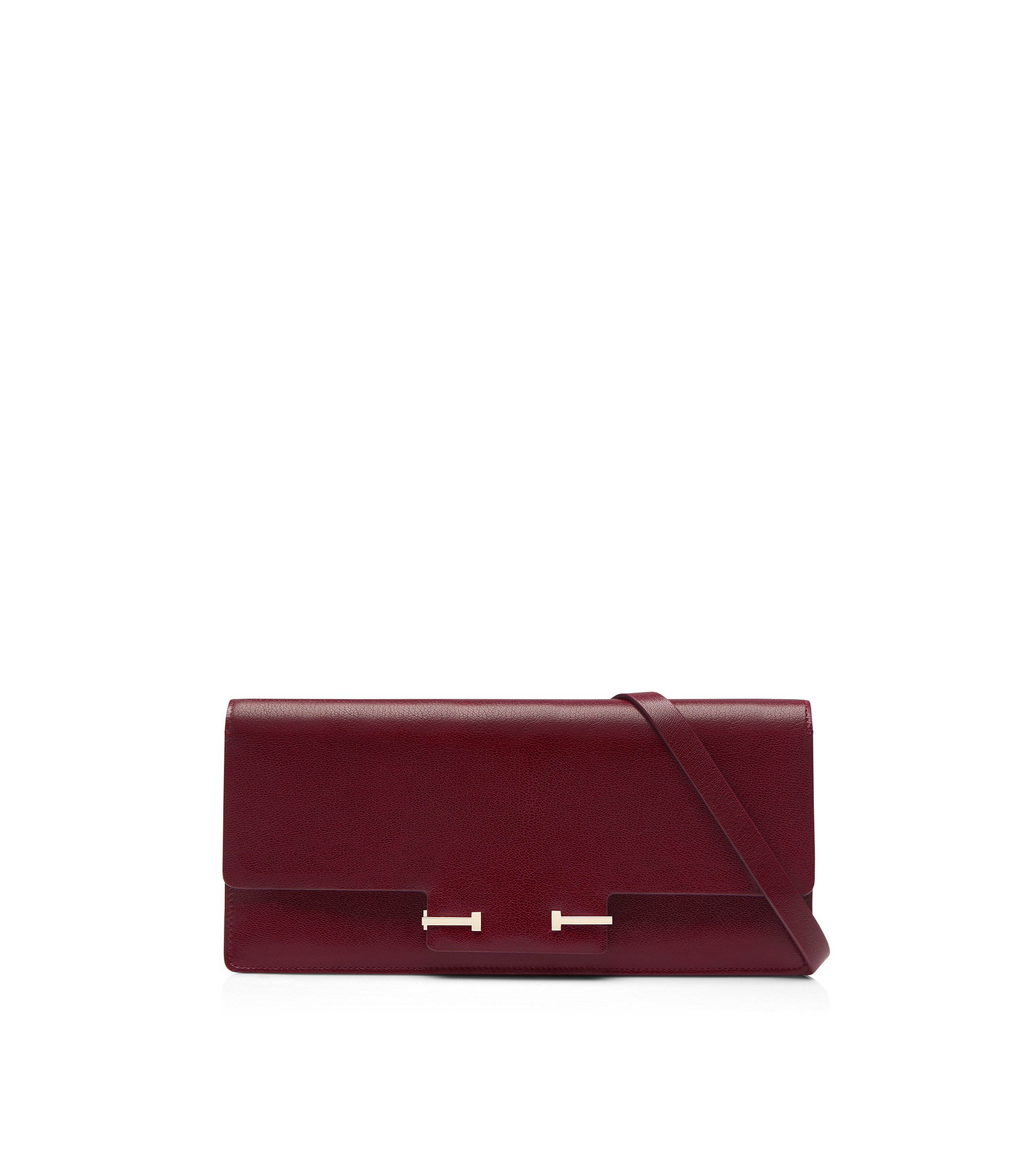 PRODUCT NO: L1899-LGO033P A TOM FORD shoulder bag in supple grain leather, defined by the signature double T closure. Designed for versatile shoulder and hand carry with a refined, modern profile and a pull-off mirror. Composition: 100% goatskin Dimensions: 30 x 13.5 x 5 cm Lining: nappa leather Details: adjustable and detachable shoulder strap, inside open pocket, pull-off mirror Made in Italy
