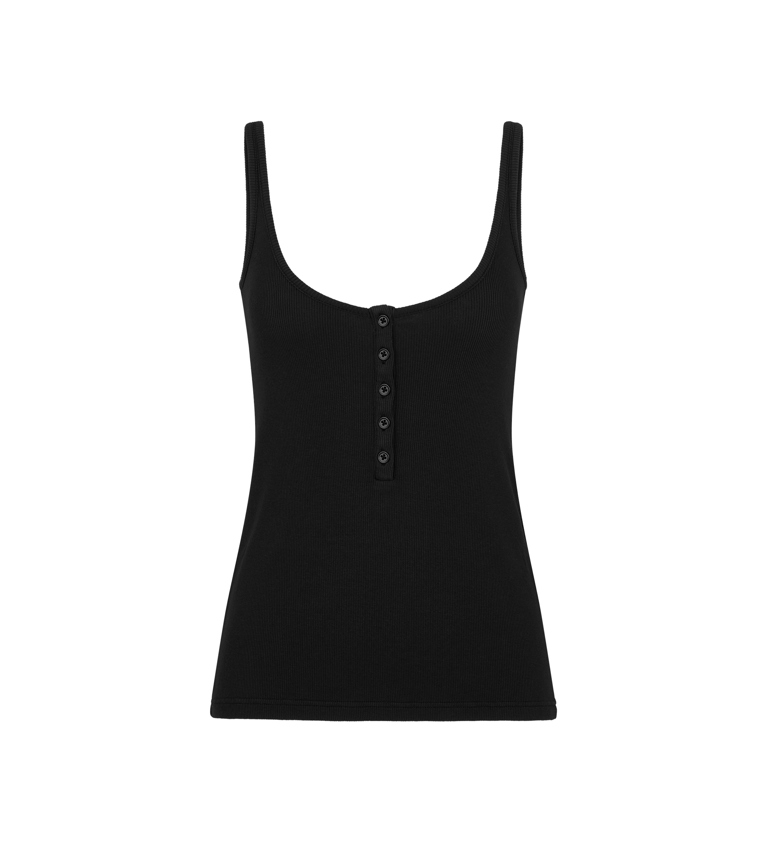 - FITTED TANK TOP - DEEP ROUND NECK ON FRONT AND BACK - MOTHER OF PEARL BUTTONS ON FRONT PLACKET - CRAFTED IN COTTON RIB JERSEY - 85% COTTON 15% SILK