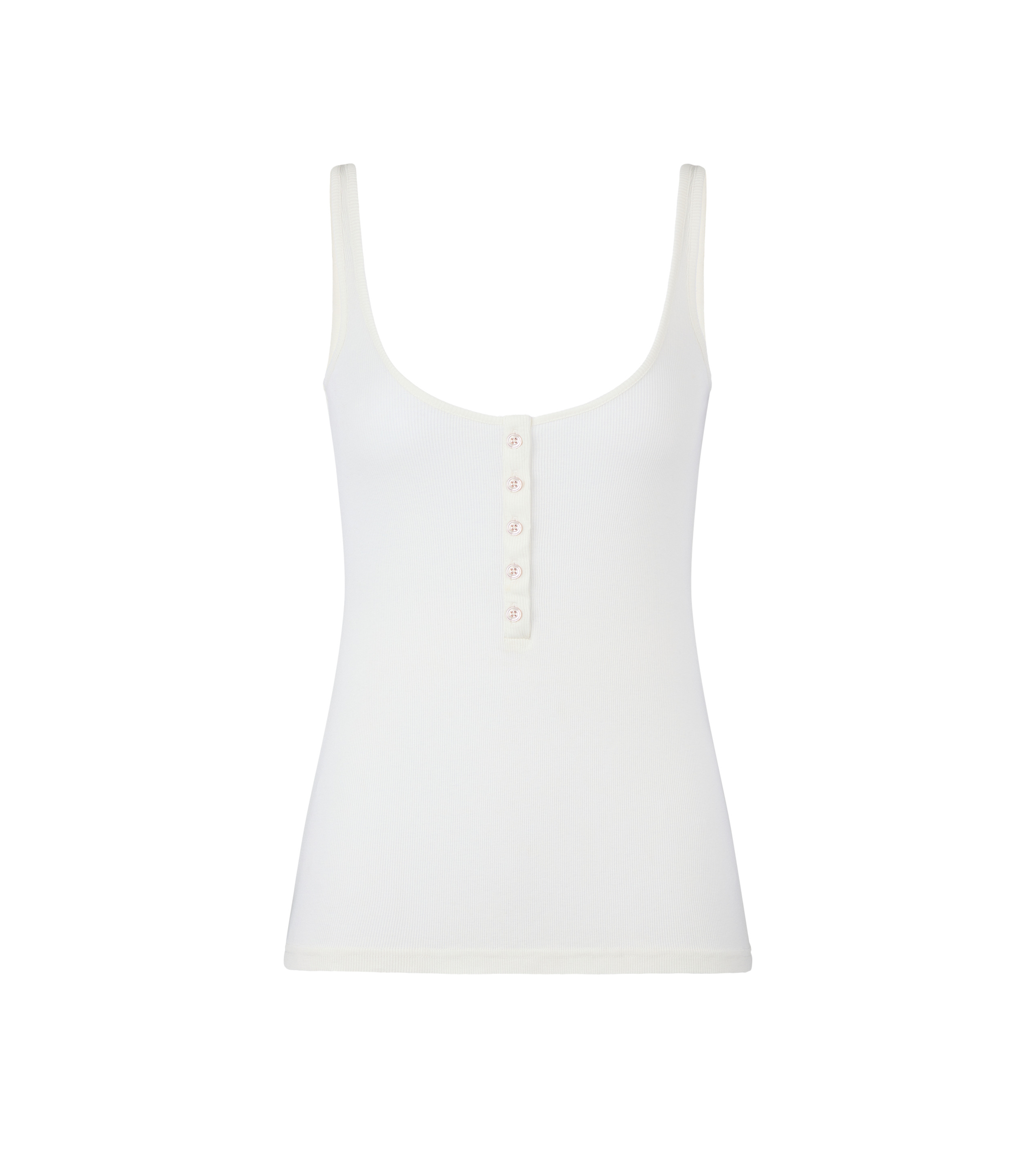 - FITTED TANK TOP - DEEP ROUND NECK ON FRONT AND BACK - MOTHER OF PEARL BUTTONS ON FRONT PLACKET - CRAFTED IN COTTON RIB JERSEY - 85% COTTON 15% SILK