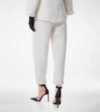 PRODUCT NO: PAK091-YAX942 Comfort and sophistication converge in these off white joggers are crafted in ultrafine cashmere blend with technical insert. The pull on silhouette is refined with an integrally knitted technical waistband and a clean internal finish for comfort. Ribbed cuffs in pure cashmere underscore the garment’s tactile richness. Slanted side and patch pockets at the back complete this essential TOM FORD piece. Unveiled on the runway, this look is part of Haider Ackermann’s first Winter 2025 Fashion Show. Composition: 49% cashmere, 27% polypropylene, 22% viscose, 2% polyester. Cuffs made of 80% cashmere, 19% polyamide, 1% polyurethan. Pockets made of 67% viscose, 33% polyester Fit: relaxed Made in Italy