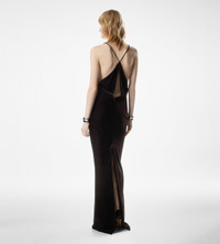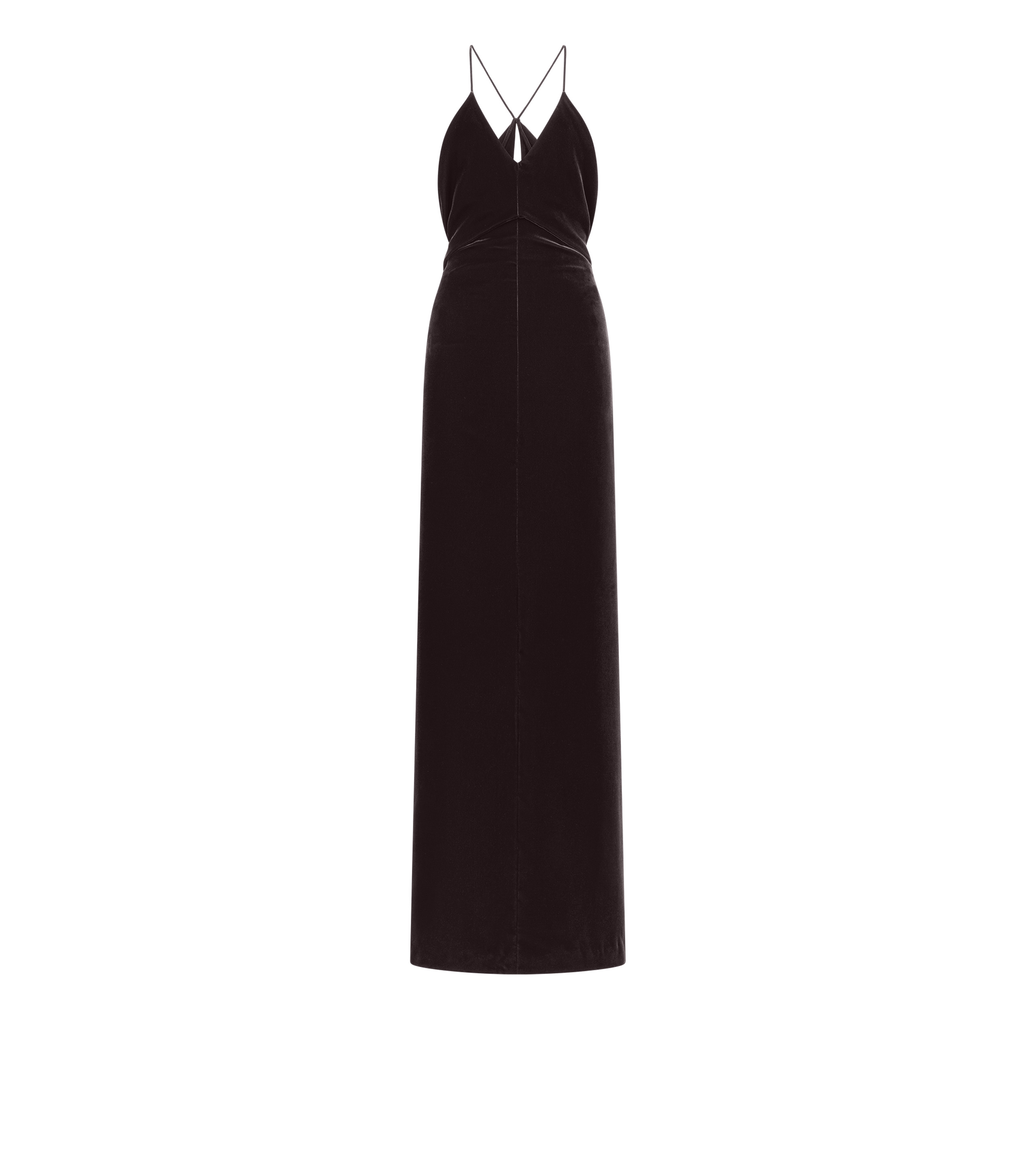 - V-NECK EVENING DRESS - CUT OUT DETAIL ON THE BACK - INVISIBLE ZIP AT THE CENTRE BACK - FULLY LINED IN SILK SATIN - FLOOR LENGTH - CRFATED IN LIGHTWEIGHT VELVET - 67% VISCOSE 33% CUPRO