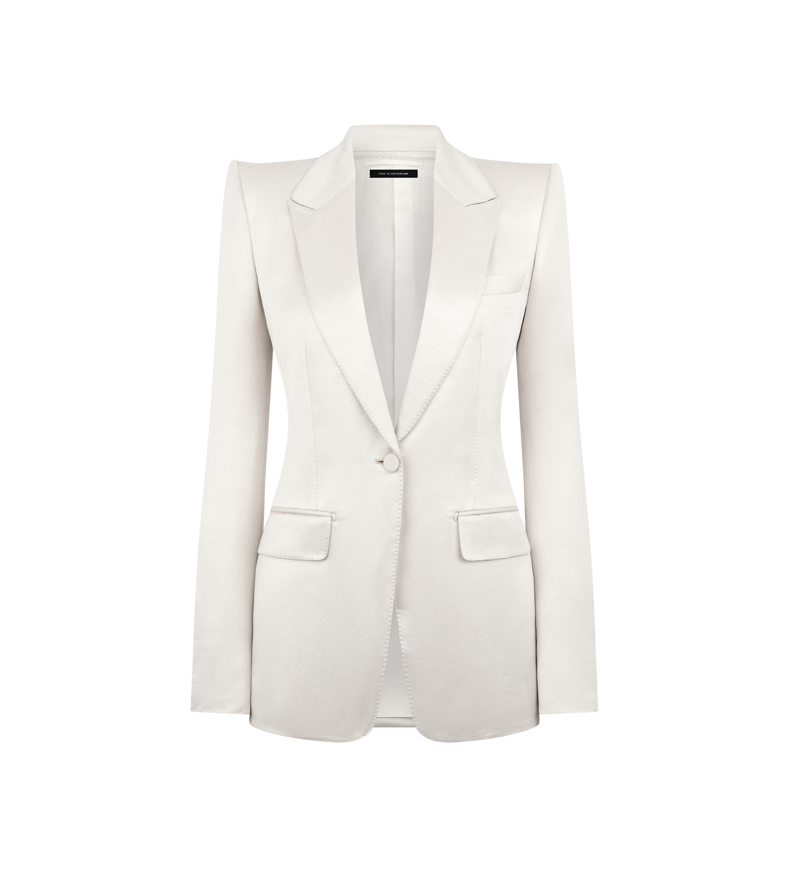 PRODUCT NO: 5955265831 A single breasted peak lapel jacket crafted in washed cotton silk duchesse, offering a lustrous look. Tailored shoulder pads and slightly curved sleeves, with flap pockets and a handmade chest pocket, with 5 kissing cuff buttons. Fully lined, reflects TOM FORD’s elegance. Composition: 61% Cotton, 39% Silk Lining: 59% Cupro, 41% Silk Alterations are complimentary in store, whether you purchase online or in person. Contact our Customer Care to reserve your fitting appointment.