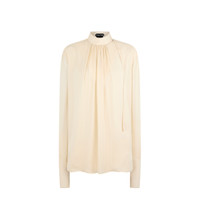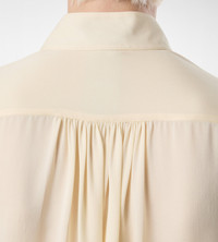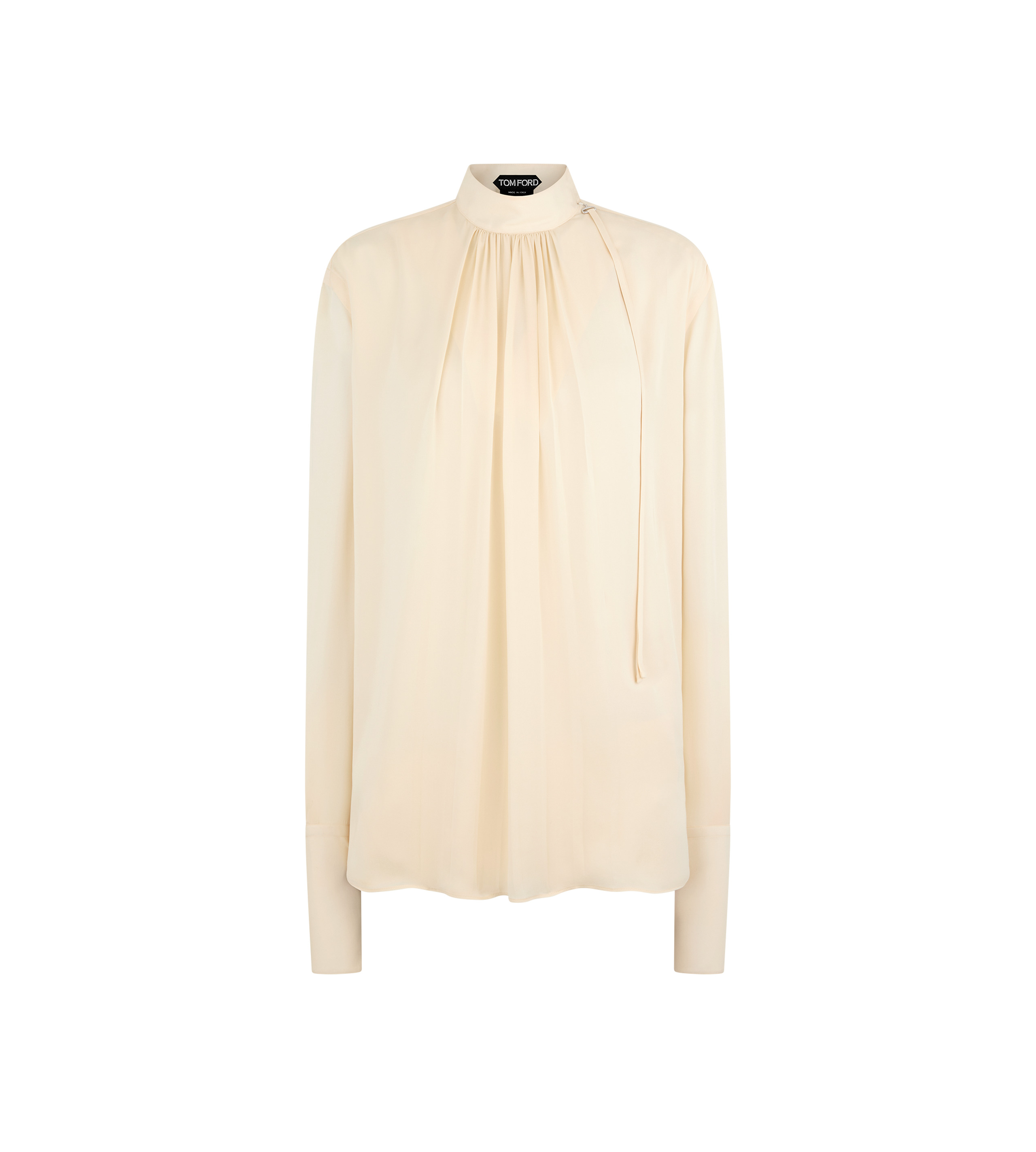 - LONG SLEEVE GATHERED PLISSE BLOUSE - STAND COLLAR - INVISIBLE ZIP INSERTED ON THE SHOULDER LINE FROM THE ARMHOLE TO THE COLLAR - PLISSE’ CONSTRUCTION WITH SOFT GATHERING AT THE FRONT - SELF FABRIC ZIP PULLER DETAIL - SELF COVERED BUTTONS FOR CUFFS - CRAFTED IN WASHED SILK GEORGETTE - 100% SILK