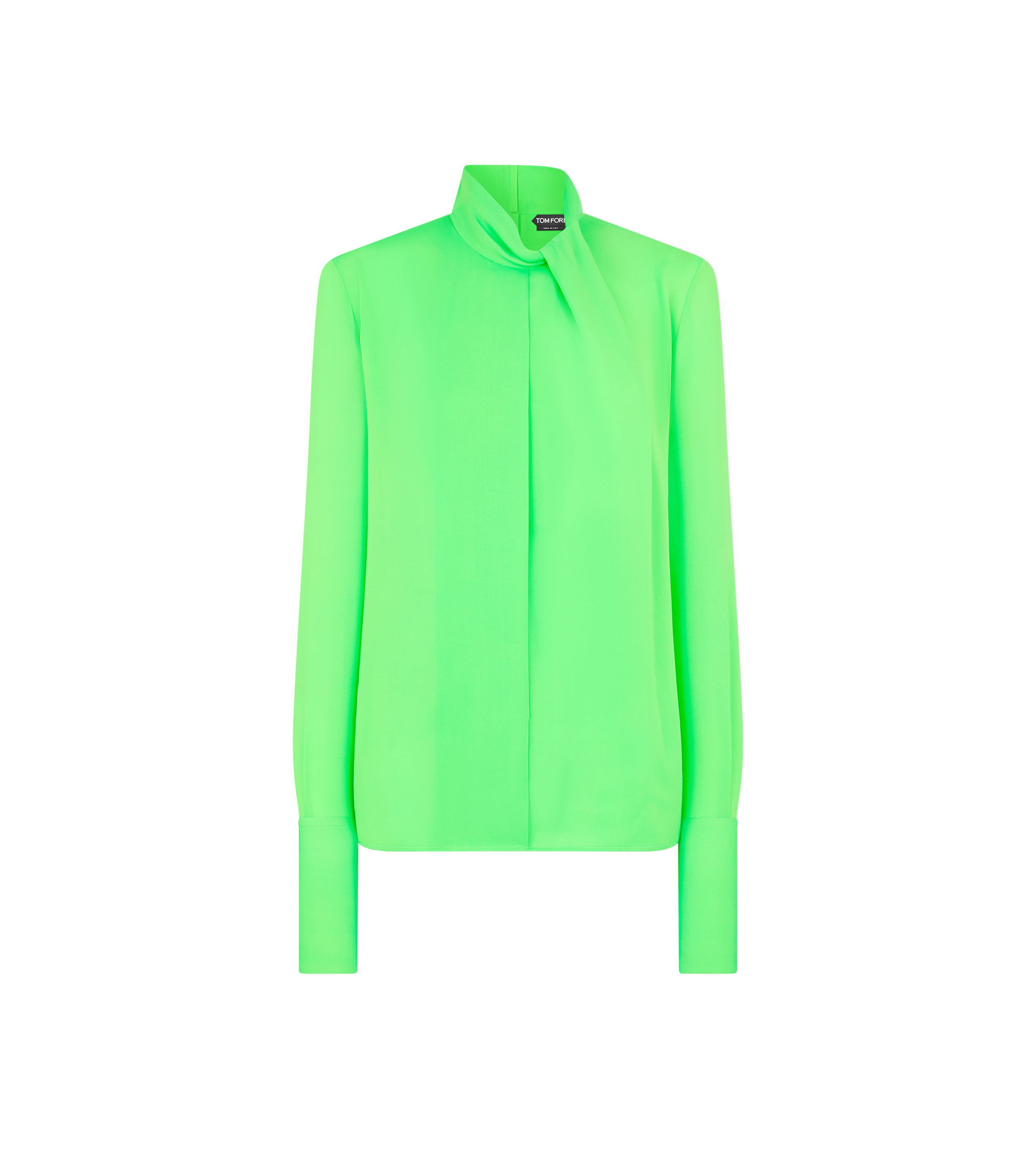 - LONG SLEEVE DRAPED COLLAR BLOUSE WITH CUT-OUT - DEEP KNIFE PLEAT AT CENTRE FRONT - KISSING PLEAT DETAIL AT CENTRE BACK - CONCEALED HOOK AND EYE CLOSURE AT CENTRE BACK COLLAR - SELF COVERED BUTTONS ON CUFFS - CRAFTED IN WASHED SILK GEORGETTE - 100% SILK