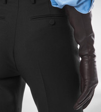 PRODUCT NO: PAW649-FAX1584 Tailored in a luxurious blend of virgin wool, mohair, and silk, these straight leg pants offer a refined structure with a rich and soft experience on the skin. The fabric is crisp yet fluid, engineered for clean lines and lasting form. An extended waistband, internal cotton structure, and discreet closures ensure a sharp fit, while hand-stitched fine bar tacks finish the side slanted pockets. Back double jet pockets and the luxurious details of self fabric covering horn buttons complete the design. Alterations are complimentary in store, whether you purchase online or in person. Contact our Customer Care to reserve your fitting appointment. Unveiled on the runway, this look is part of Haider Ackermann’s first Winter 2025 Fashion Show. Composition: 52% virgin wool, 32% mohair, 16% silk with lining made of 59% cupro, 41% silk, horn buttons