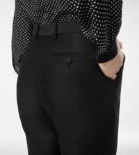 PRODUCT NO: PAW676-FAX1666 Tailored trousers in wool silk radzmir with a luminous finish and minimal TOM FORD detailing. Composition: 86% Virgin Wool, 14% Silk Lining: 59% Cupro, 41% Silk Alterations are complimentary in store, whether you purchase online or in person. Contact our Customer Care to reserve your fitting appointment.
