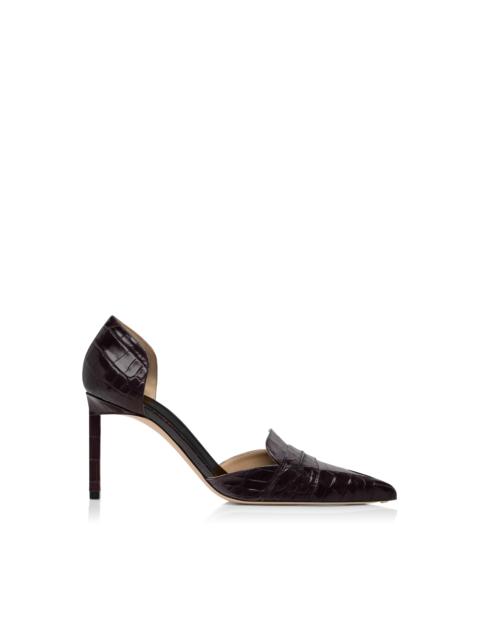 SHINY STAMPED CROCODILE LEATHER EVA D'ORSAY PUMP
