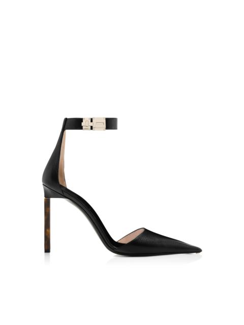 SUPPLE GRAIN LEATHER T LATCH ANKLE STRAP PUMP