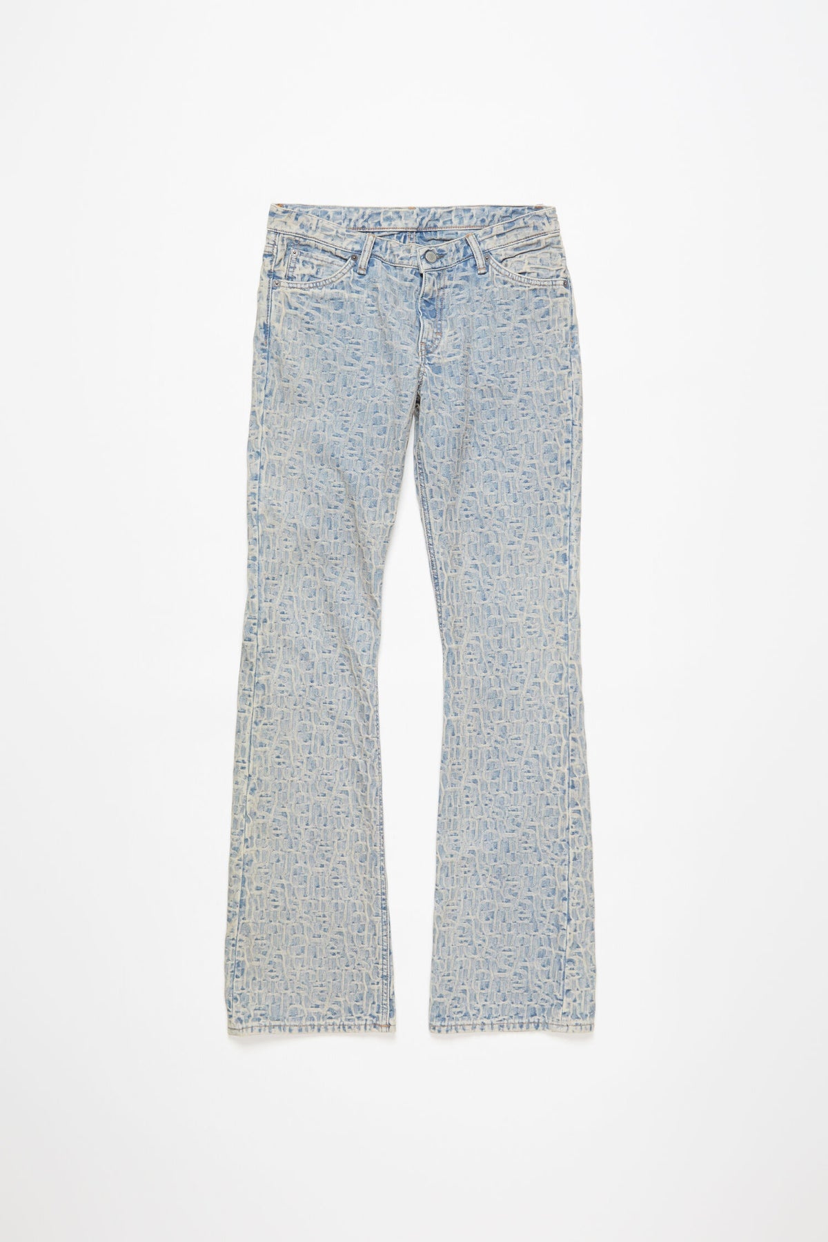 Acne Studios ‘2005’ jeans are cut to a slim fit with a low waist, bootcut leg and long length. Adorned with an all-over monogram, crafted from non stretch denim in a blue/beige with a sandy mineral tint.