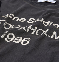 The Logo 1996 T-Shirt by Acne Studios in Faded Black is a timeless wardrobe essential with a modern edge. Crafted from premium cotton, it features a vintage finish that gives it a distinctive worn-in look. Designed for a relaxed unisex fit, this crew neck T-shirt has distressed details at the neck, cuffs and hem, adding a touch of character. The Acne 1996 logo completes the design, paying homage to the brand's heritage. Stylish and versatile, it's a great addition to any casual outfit.