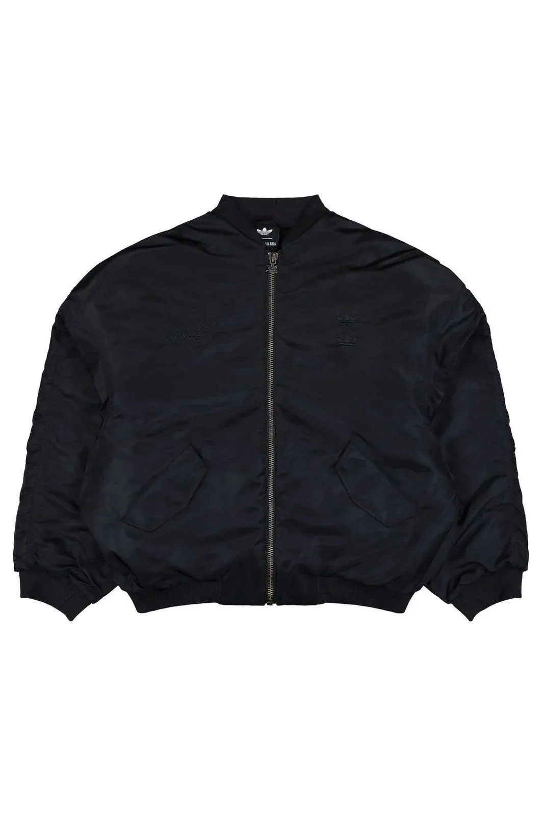 The Willy Chavarria x adidas Satin Bomber Jacket (Black) combines classic bomber style with modern, elevated details, featuring a smooth, satin-like finish and a premium gold zipper for a luxurious, yet street-ready look. The signature adidas striping on the sleeves and the collaborative embroidery enhance the design, creating a bold and refined outerwear piece that embodies the dynamic fusion of fashion and sports. Material: 100% Nylon Color: Black Made in China Sku: KD9361