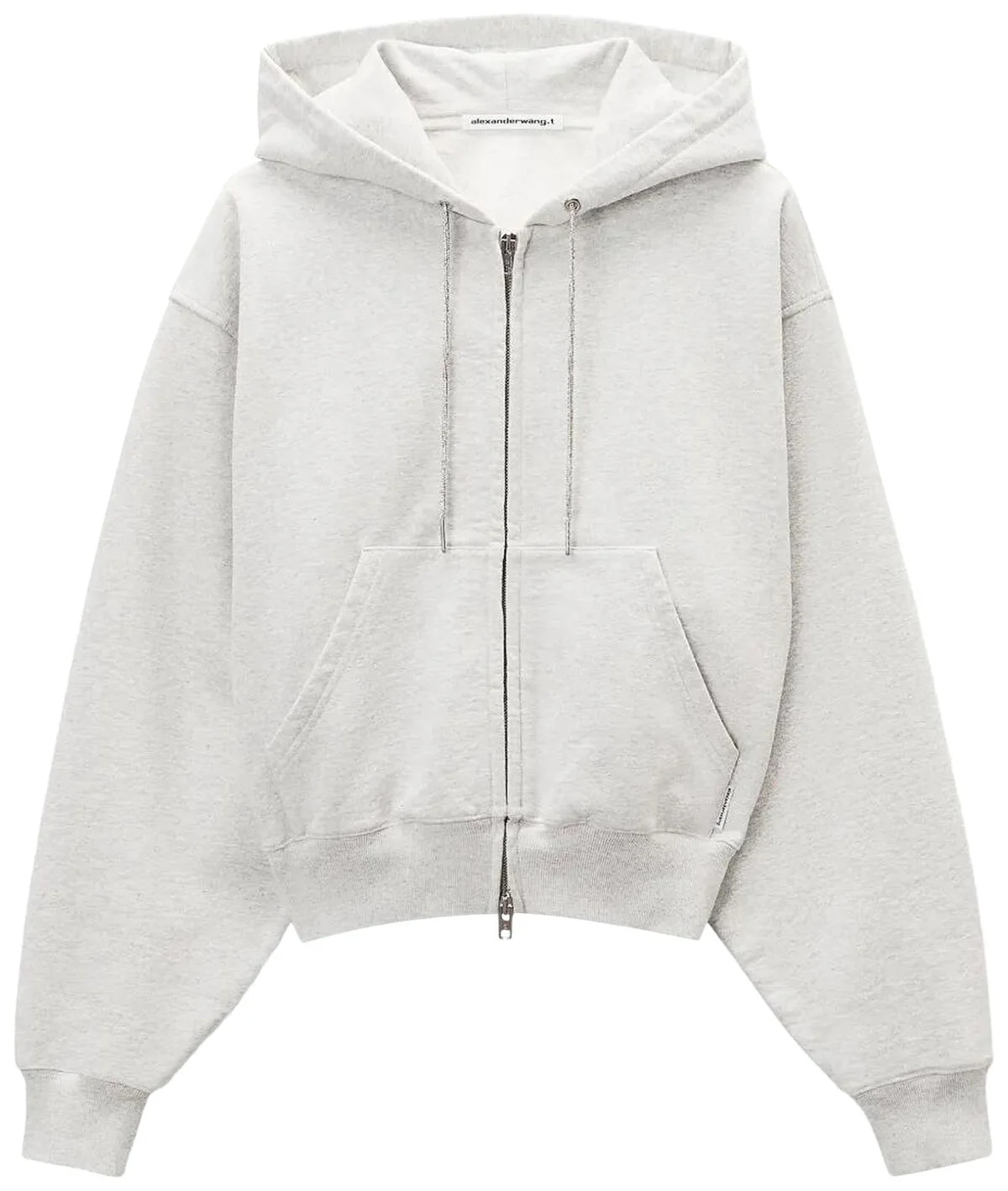 ZIP-UP HOODIE W/ RHINESTONE DRAWCORD (LIGHT HEATHER GREY)