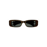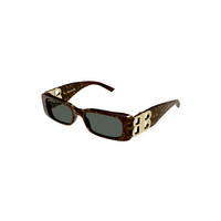 The BALENCIAGA Dynasty Rectangle Sunglasses have a bold rectangular shape and a sleek havana and gold acetate frame. They offer a modern take on classic luxury, with grey lenses that provide a sharp contrast and ensure everyday UV protection. Crafted expertly in Italy, they reflect Balenciaga's commitment to refined aesthetics and premium quality. Lens Width: 51mm. Material: 100% Acetate Color: Havana/Gold Made in Italy Sku: BB0096S/002