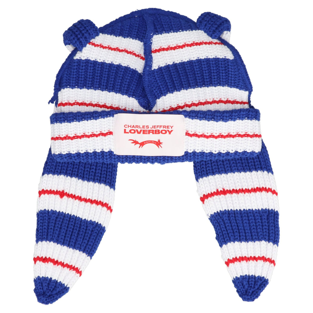 CHUNKY RABBIT BEANIE (BLUE/RED/WHITE STRIPE)