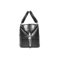 The Bowling Bag by Enfants Riches Deprimes is a luxury accessory crafted from full-grain calfskin. This large top-handle bag has twin rolled carry handles and an embossed iron cross logo on the front, adding a unique touch. The main compartment is secured with a zipper closure, complemented by a custom logo lock and hardware for enhanced security. Inside, there is an interior zip pocket for organized storage. Made in Italy, this bag combines functionality with top-quality craftsmanship. Material: 100% Calf Leather Color: Black Made in United States Sku: 100358