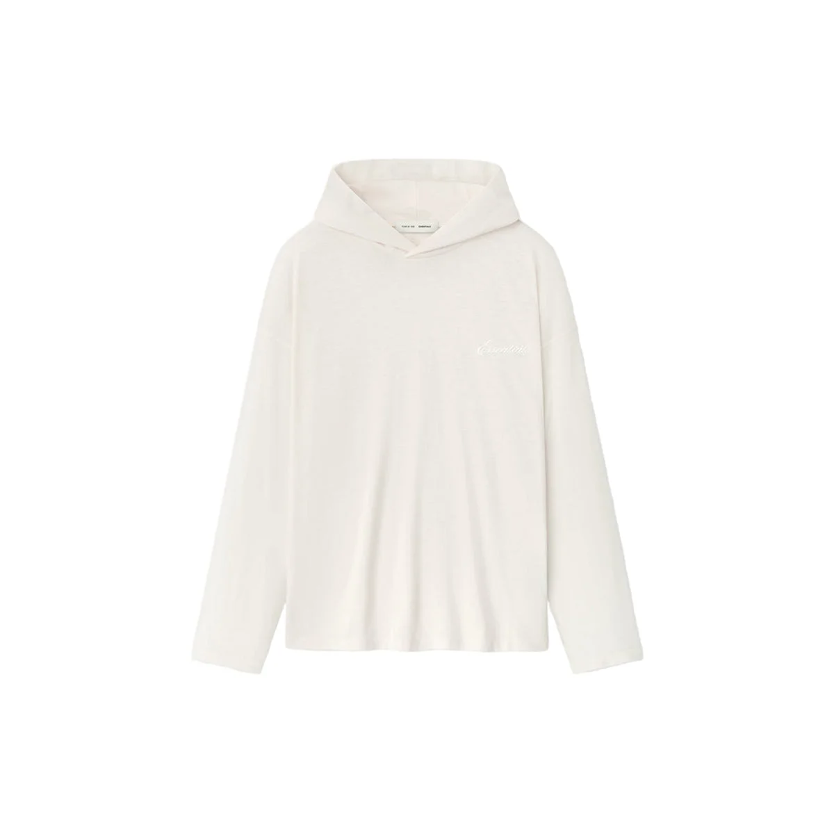 The Fear of God Essentials Women's Embroidered Classic Hooded Long-Sleeve Tee in Ivory is made from lightweight cotton-poly jersey for a soft, airy feel. Featuring a relaxed fit, rib-knit cuffs, and a functional hood, it's finished with an embroidered Essentials logo on the front and a Fear of God label at the back collar for a clean, versatile look. Material: 60% Cotton 40% Polyester Color: Ivory Made in Vietnam Sku: 125HO257042FW