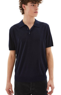 Men’s short-sleeved polo shirt in navy-blue merino wool