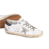 The Women's Super Star Sneakers by Golden Goose, in white, ice, or dark grey, embody the perfect fusion of art and fashion. Each pair is a unique canvas for creative expression, made from 100% premium leather. The deliberately distressed finish gives the model a signature worn-in look, while perforated details, a model stamp, and a debossed logo add subtle but distinctive touches. Contrasting brand heel tabs and rubber soles in complementary tones enhance the overall design. Classic round toes and front laces provide everyday comfort, making these sneakers an expression of Italian craftsmanship and individuality. Size Chart: EU. Material: 100% Leather Color: White/Ice/Dark Grey Made in Italy Sku: GWF00102F00611311915