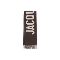 The Fringe Logo Scarf in Brown by JACQUEMUS is a refined cold-weather accessory crafted from 100% wool, providing exceptional warmth and softness. It features solid color yarn and a bold, contrasting jacquard logo. This Italian-made scarf adds a modern graphic touch to any look, with 12 cm fringes on each end, and measures 180 x 35 cm. Its timeless texture blends with signature JACQUEMS detailing.