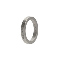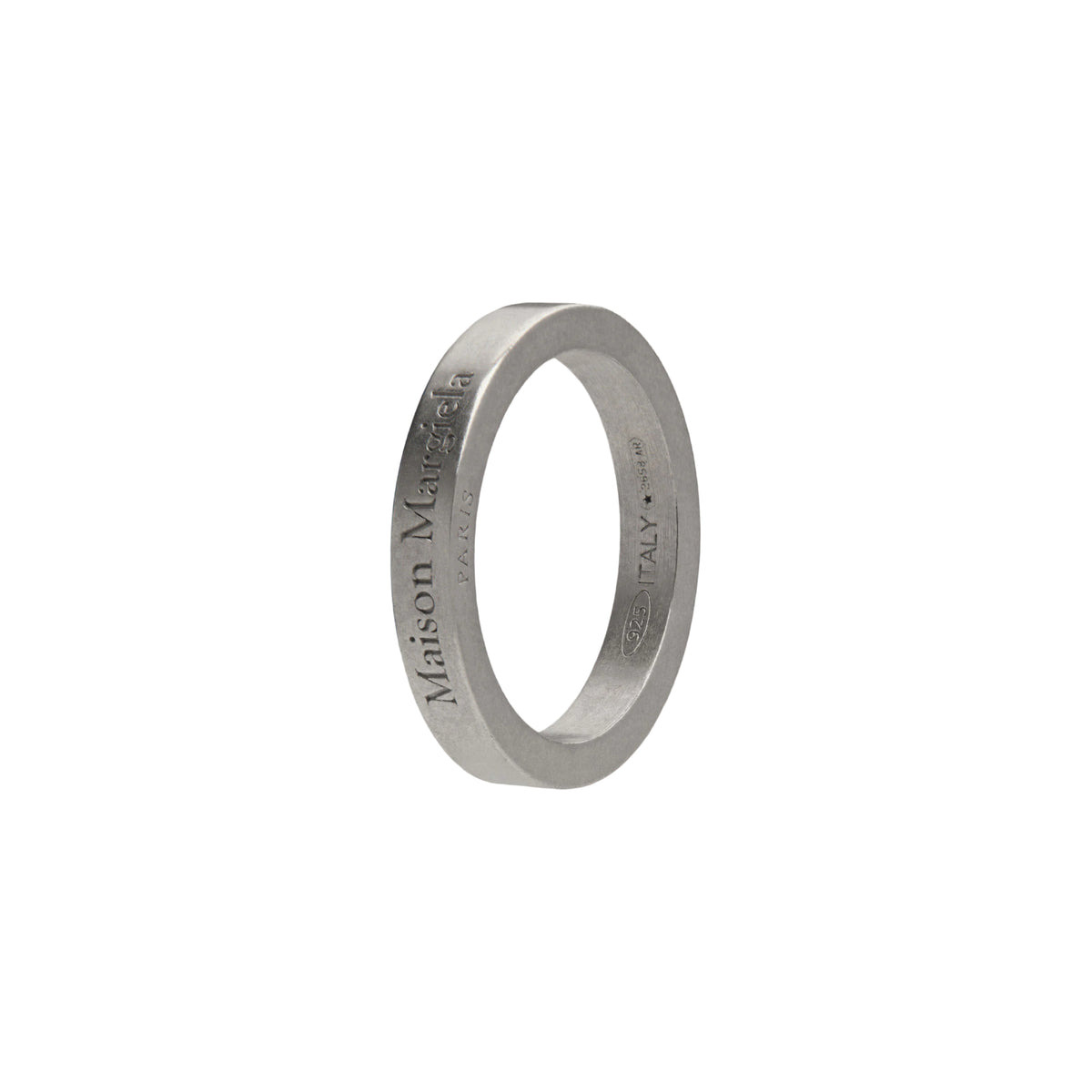This 3mm ring is crafted from 100% silver and finished with yellow gold plating for a refined, understated look. It features an engraved Maison Margiela logo in a tone-on-tone design, adding a subtle but distinctive touch. The palladium burattato finish enhances its elegance, making it a timeless accessory. Made in Italy, this ring embodies the brand's signature minimalist aesthetics and attention to detail. Material: 100% Silver Color: 951 Polished Palladio Made in Italy Sku: SM1UQ0080/SV0158/951