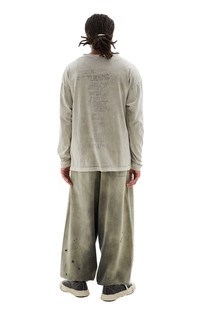This long-sleeved T-shirt from MIHARA YASUHIRO is crafted entirely in Japan using a special treatment technique to achieve a vintage-like finish. Printed on the front and repeated on the back, a faded hand-painted like motif adds a double dose of brand identity. Relaxed fit silhouette in bleached beige touch. Material: 100% Cotton Color: Beige Made in Japan Sku: A12LT601