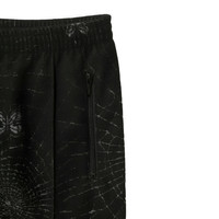 The Track Pants (Black) from NEEDLES are reimagined in plush pile material, offering a soft, three-dimensional texture that brings the spider web and butterfly motifs to life. This unique design elevates the pants beyond typical sportswear, adding a touch of glamour to their classic, slightly wide straight silhouette. A standout piece that combines comfort and high-fashion sensibility. Material: 100% Polyester Color: Black Made in Japan Sku: QV330B