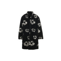 This black faux fur coat from Official Collaboration SAINT MXXXXXX x DENIM TEARS combines luxurious texture with contemporary style. It features front button fastening and two side welt pockets, offering both practicality and elegance. An abstract pattern print adds a unique artistic touch to this coat, making it stand out from the crowd. Shawl lapels complete the sophisticated design, giving it a chic look. The coat is made from 100% polyester and is soft and warm, perfect for cooler weather. Its striking design and high-quality construction make this coat a statement piece that will appeal to anyone seeking style and comfort. Material: 100% Polyester Color: Black Made in Japan Sku: SMYS10000C51