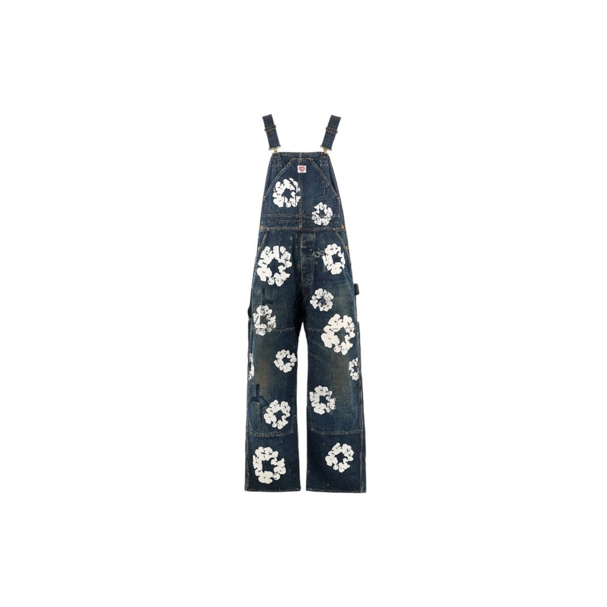 + Denim Tears Distressed Patchwork Floral-Print Denim Overalls