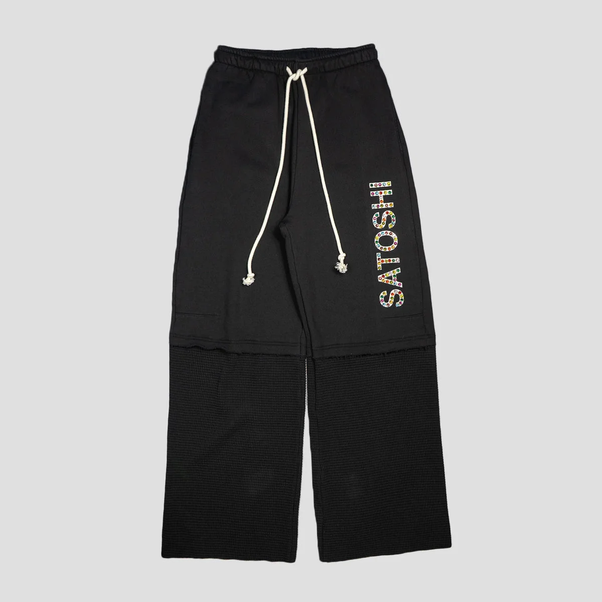 DOUBLE LAYER STUDDED SWEATPANTS (BLACK)
